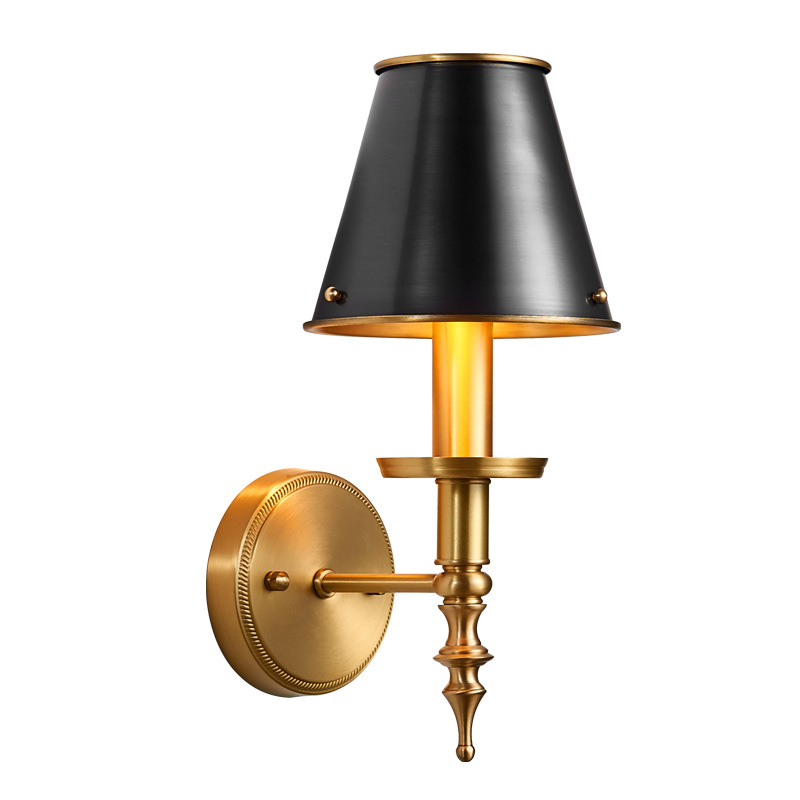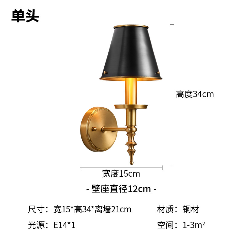 미국식 모든 구리 벽 램프 유럽 스타일의 간단한 거실 침실 침대 옆 램프 복고풍 고급 황동 검은 전등 벽 램프