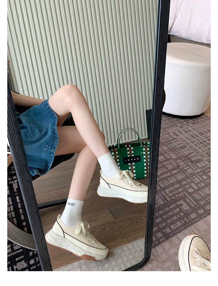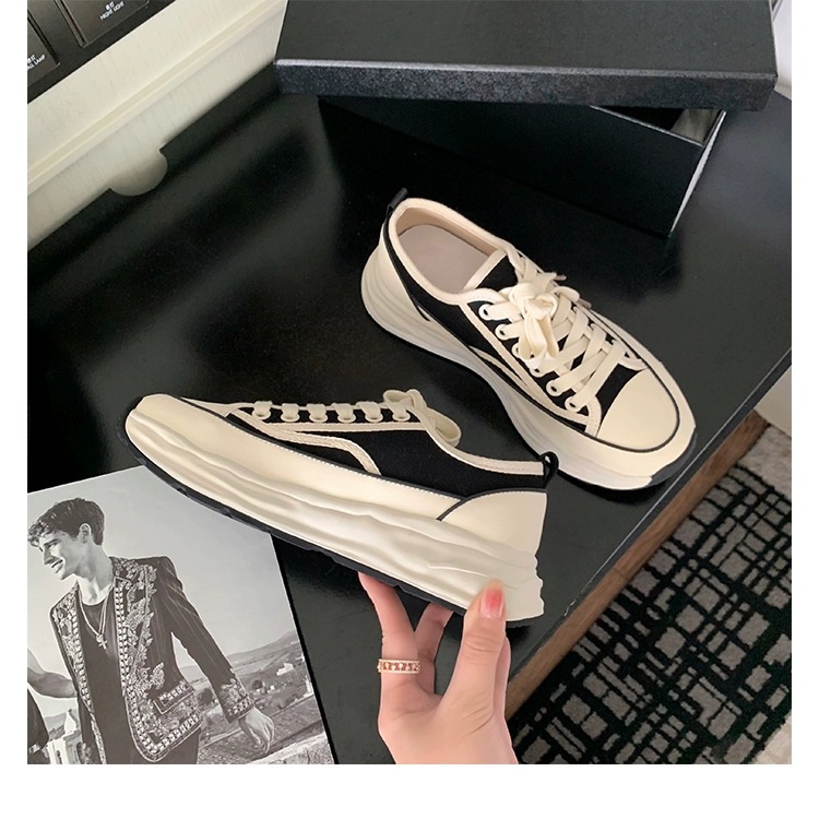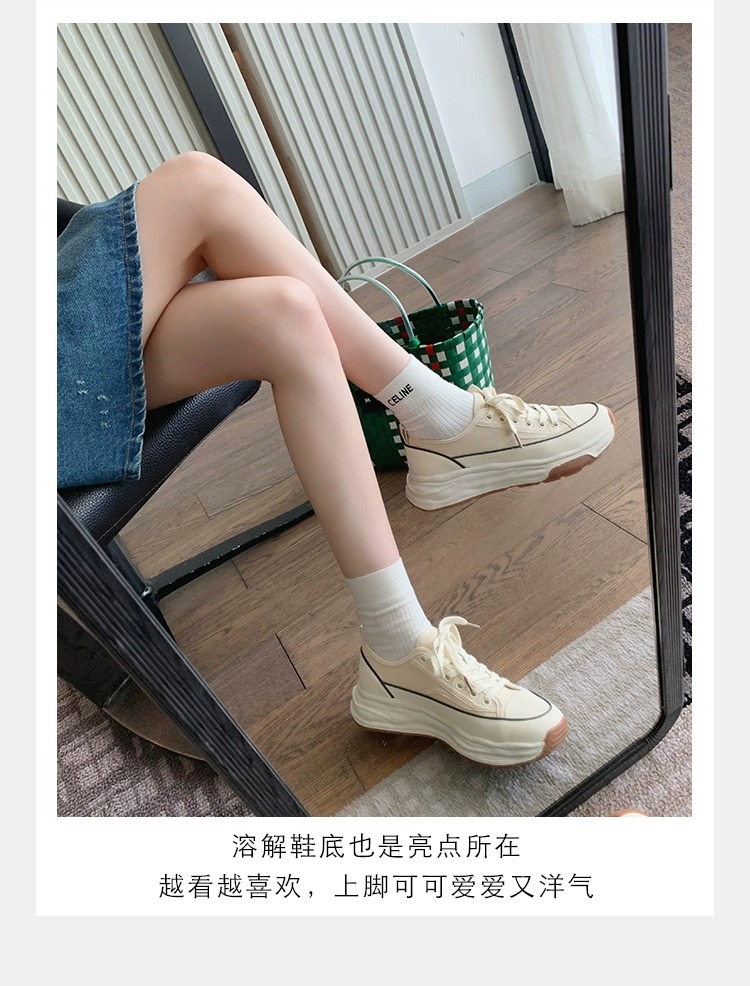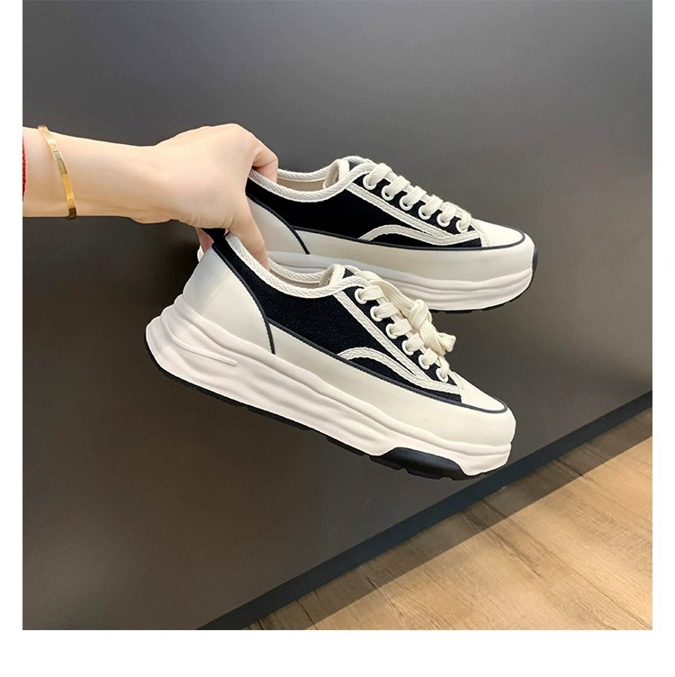 여성 플랫폼 캔버스 신발 2024 여름 새로운 스타일 보드 신발 흰색 내부 높이 증가 신발 여성 올 매치 통기성 캐주얼 신발스토어 가기