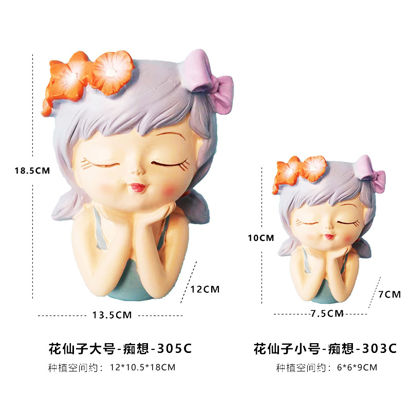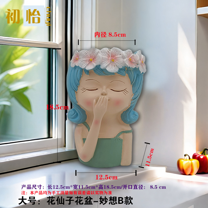 꽃 요정 꽃 냄비 바탕 화면 작은 장식품 북유럽 스타일 귀여운 만화 다육 꽃 장식 수지 작은 장식품스토어 가기