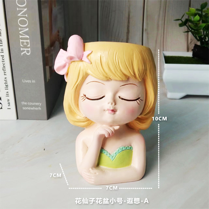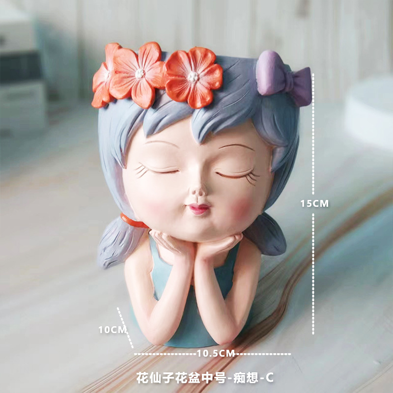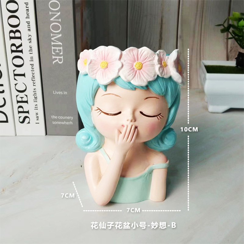 꽃 요정 꽃 냄비 바탕 화면 작은 장식품 북유럽 스타일 귀여운 만화 다육 꽃 장식 수지 작은 장식품