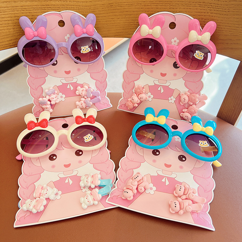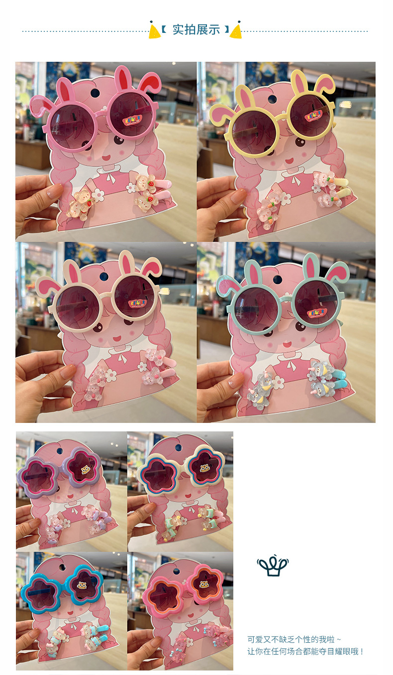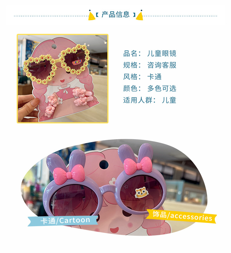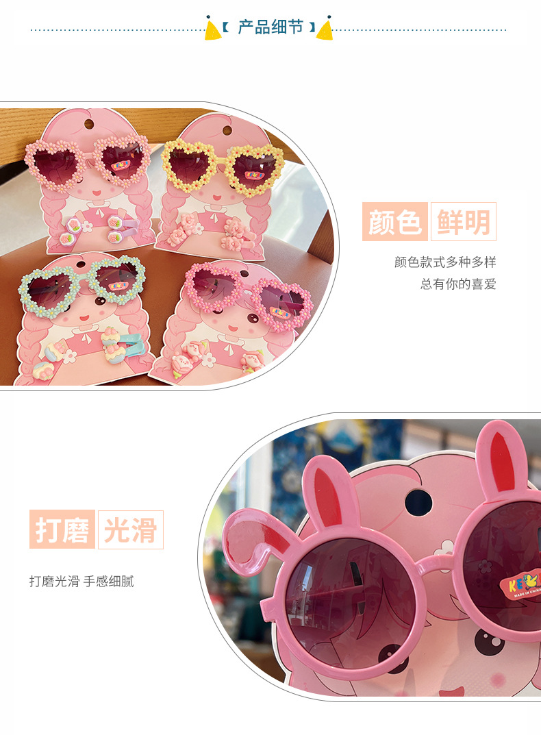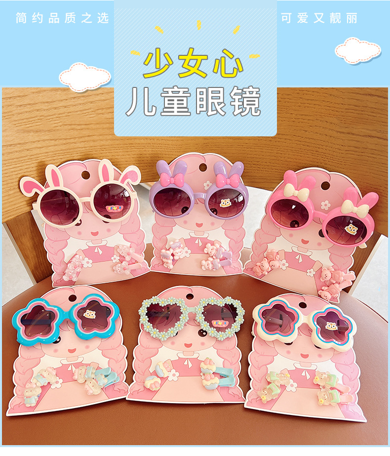 2025 새로운 어린이 여름 태양 보호 선글라스 만화 귀여운 소녀 머리핀 고무 밴드 제조 업체 도매