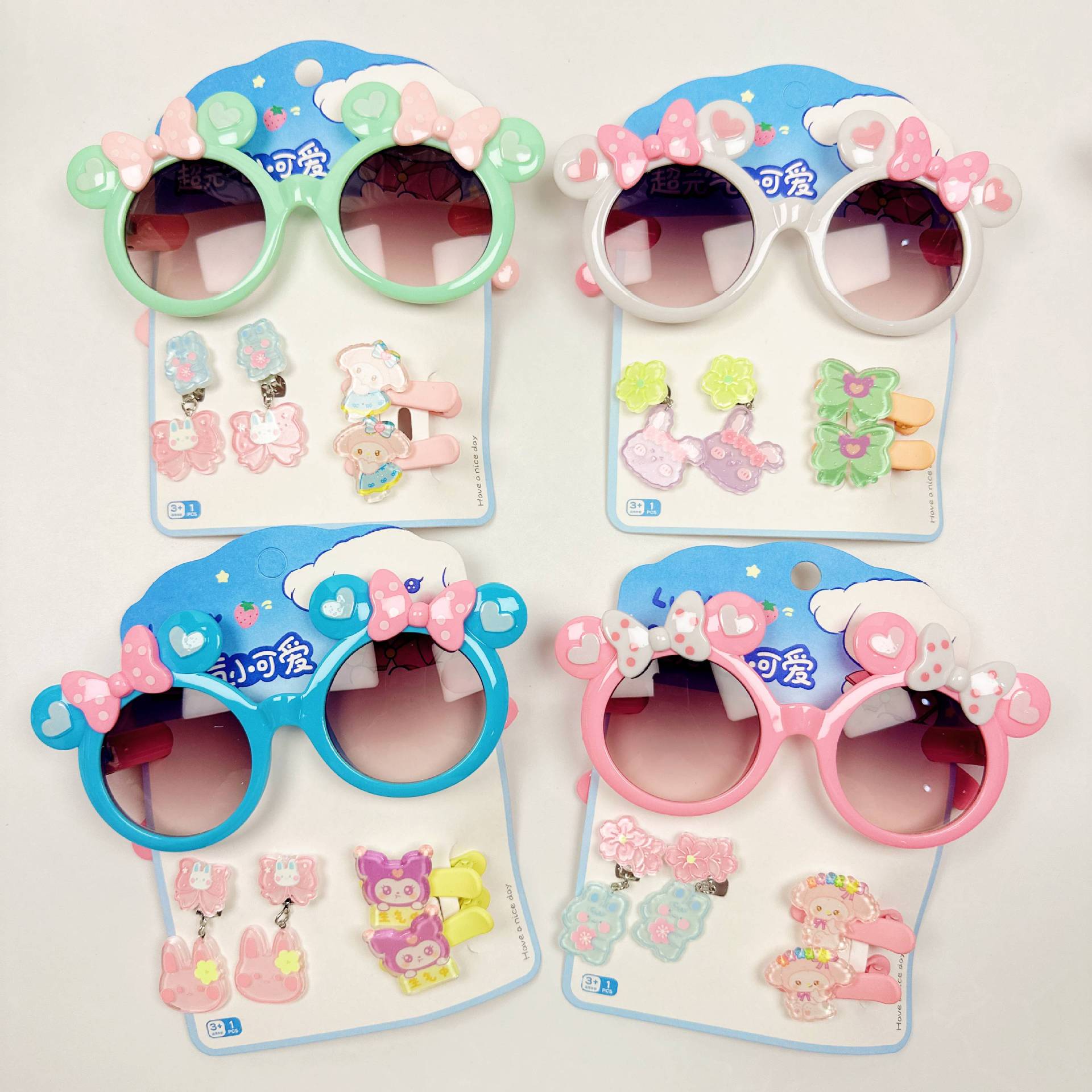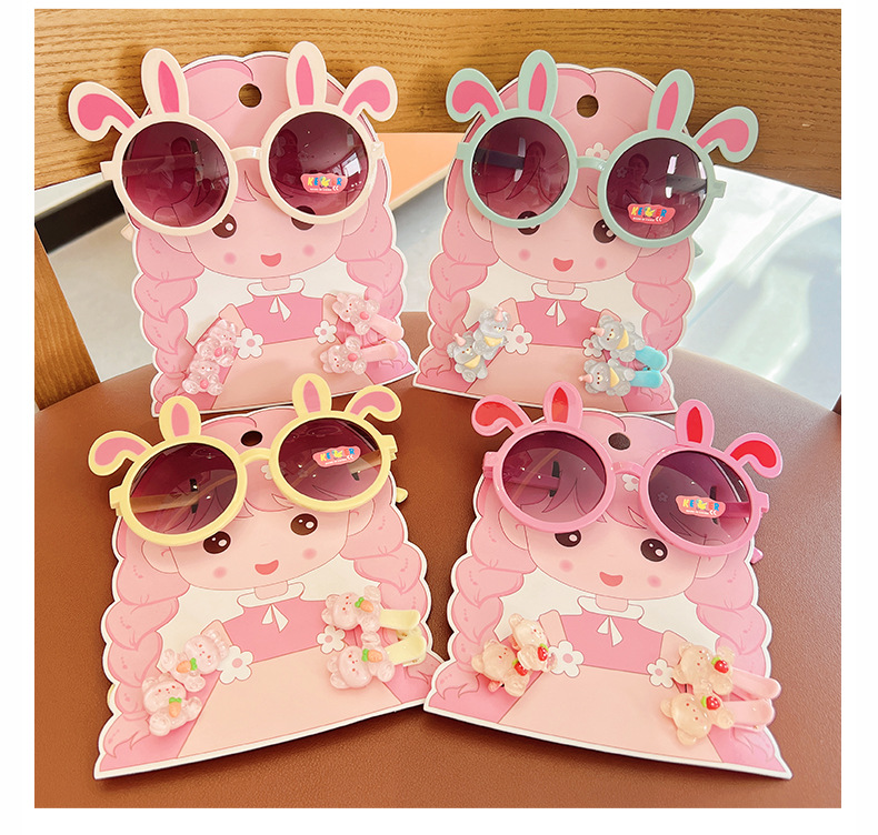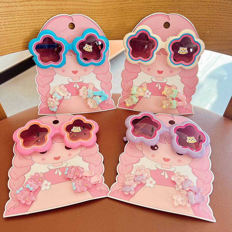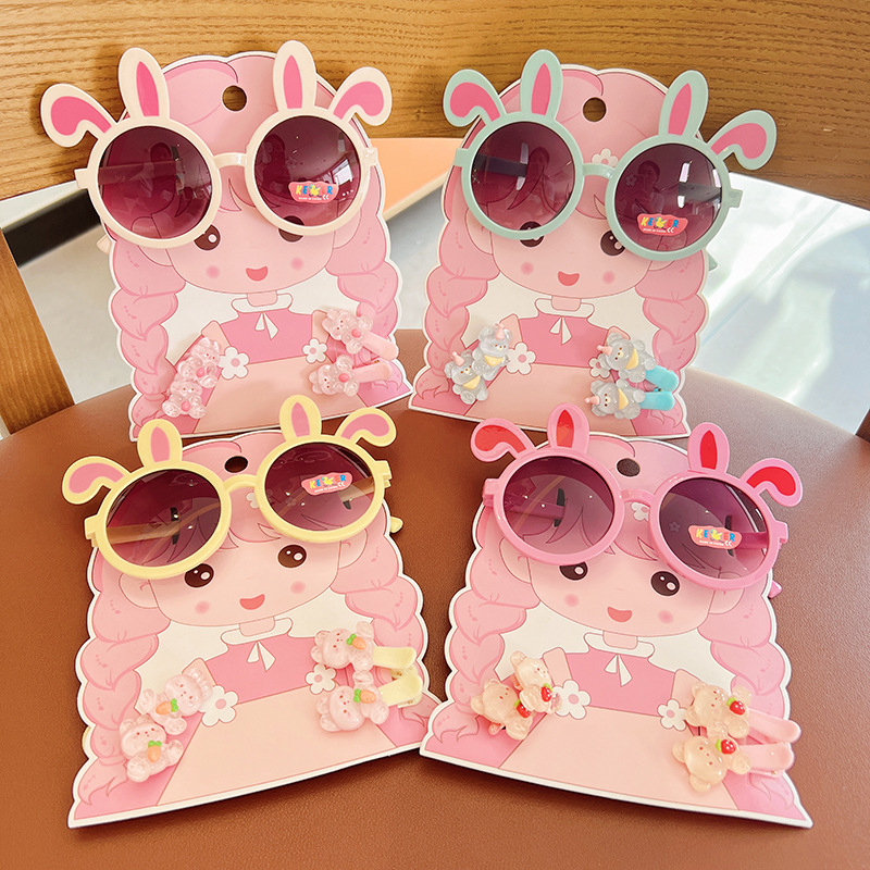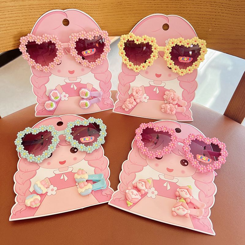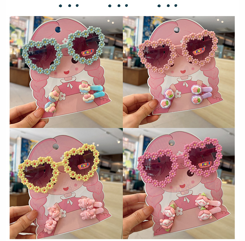 2025 새로운 어린이 여름 태양 보호 선글라스 만화 귀여운 소녀 머리핀 고무 밴드 제조 업체 도매