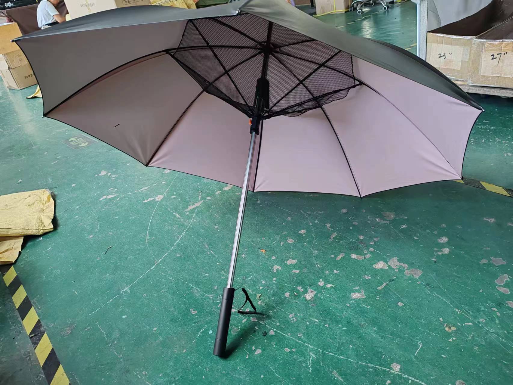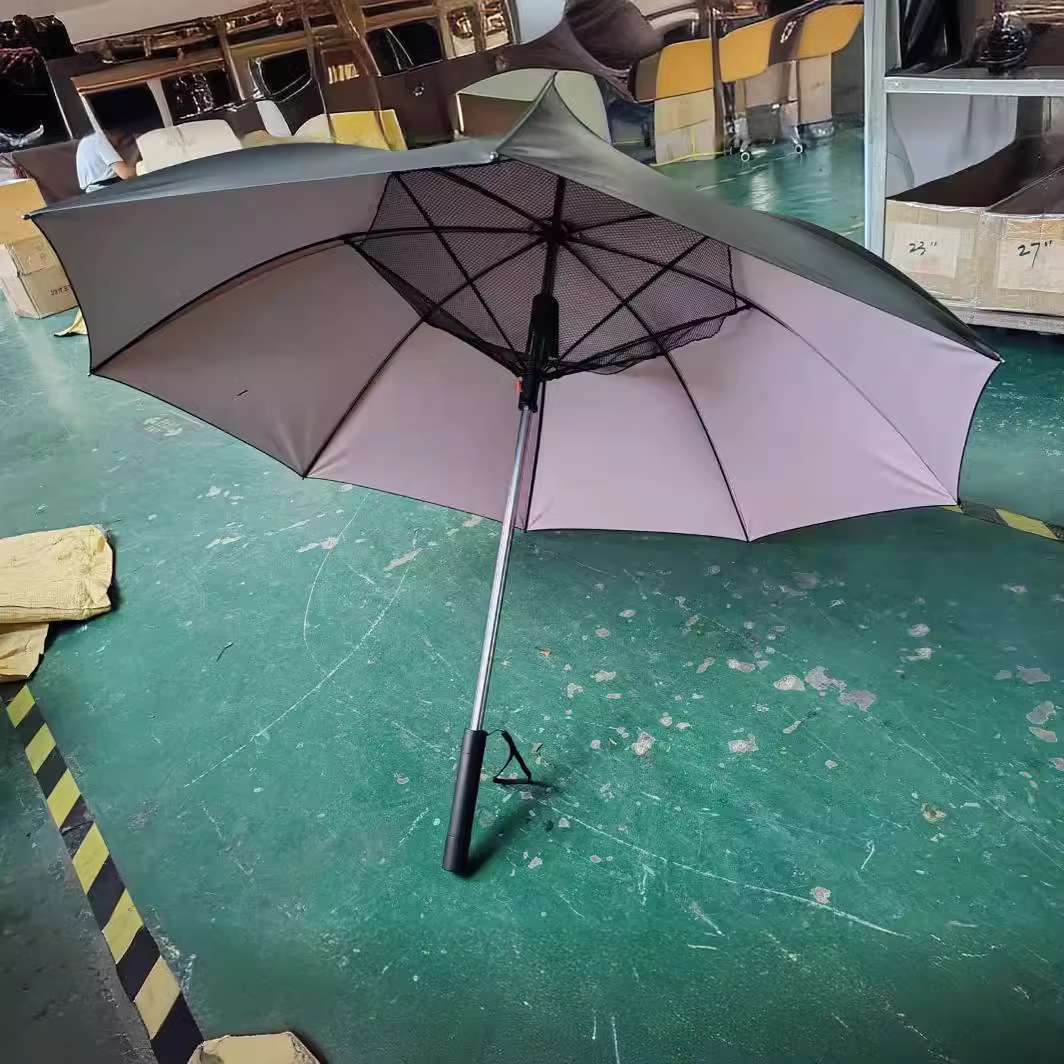 팬 우산으로 긴 손잡이 태양 보호를 충전하는 팬으로 27 인치 충전 간단한 이중 목적 매뉴얼스토어 가기