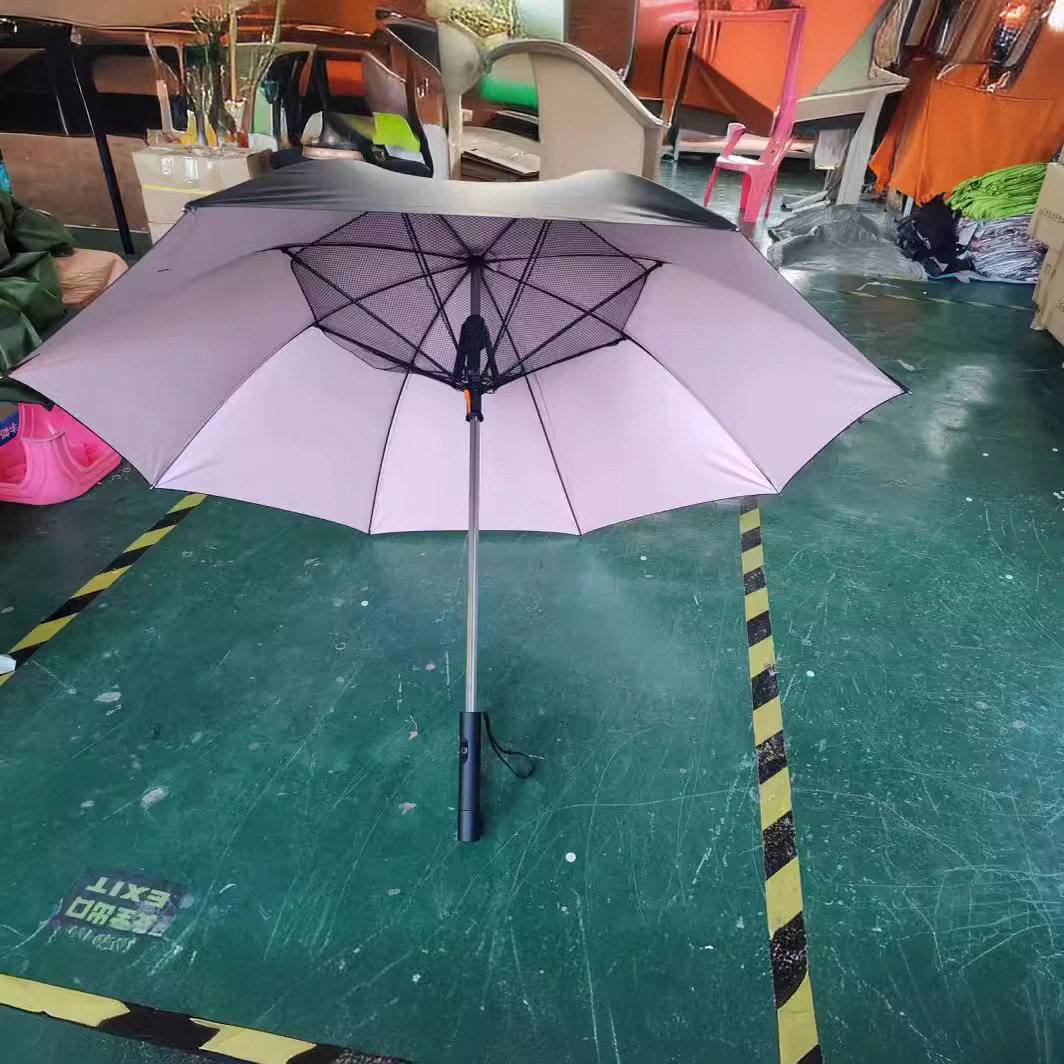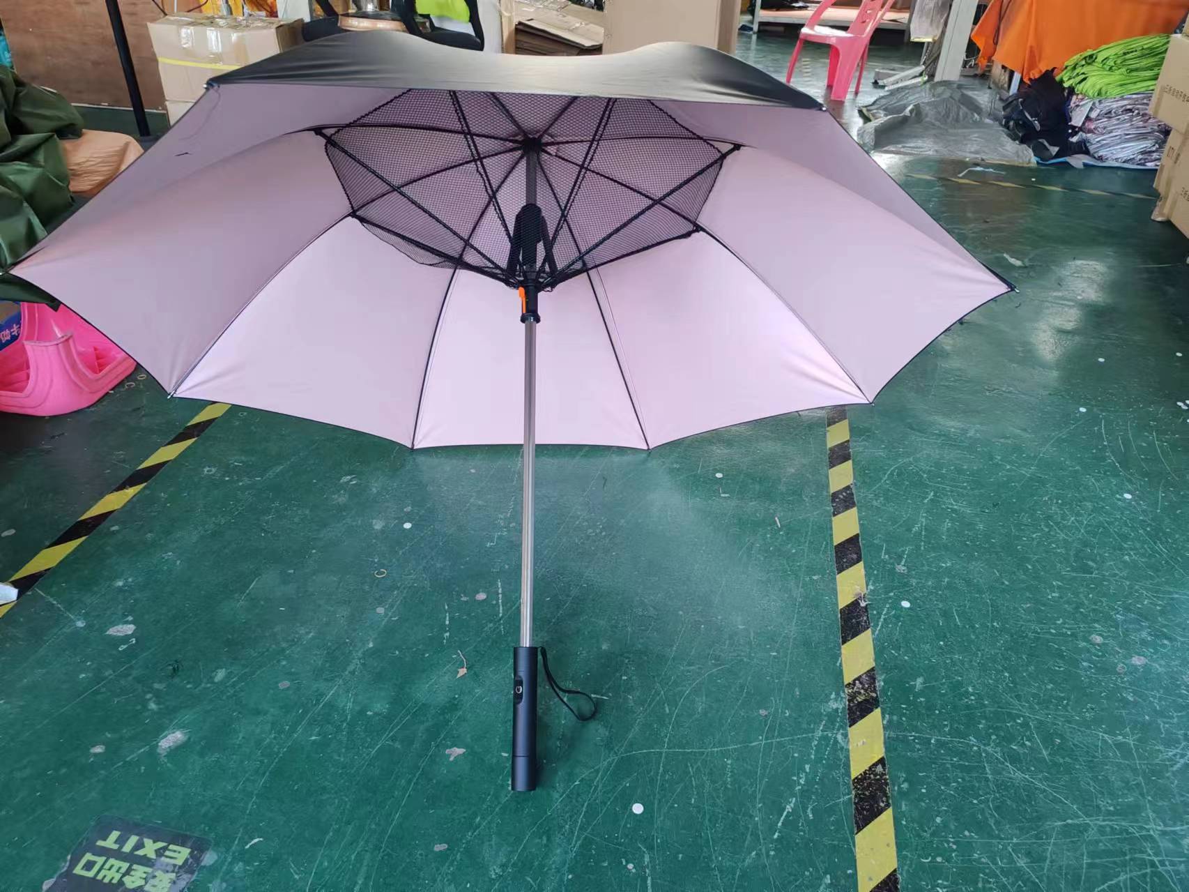 팬 우산으로 긴 손잡이 태양 보호를 충전하는 팬으로 27 인치 충전 간단한 이중 목적 매뉴얼