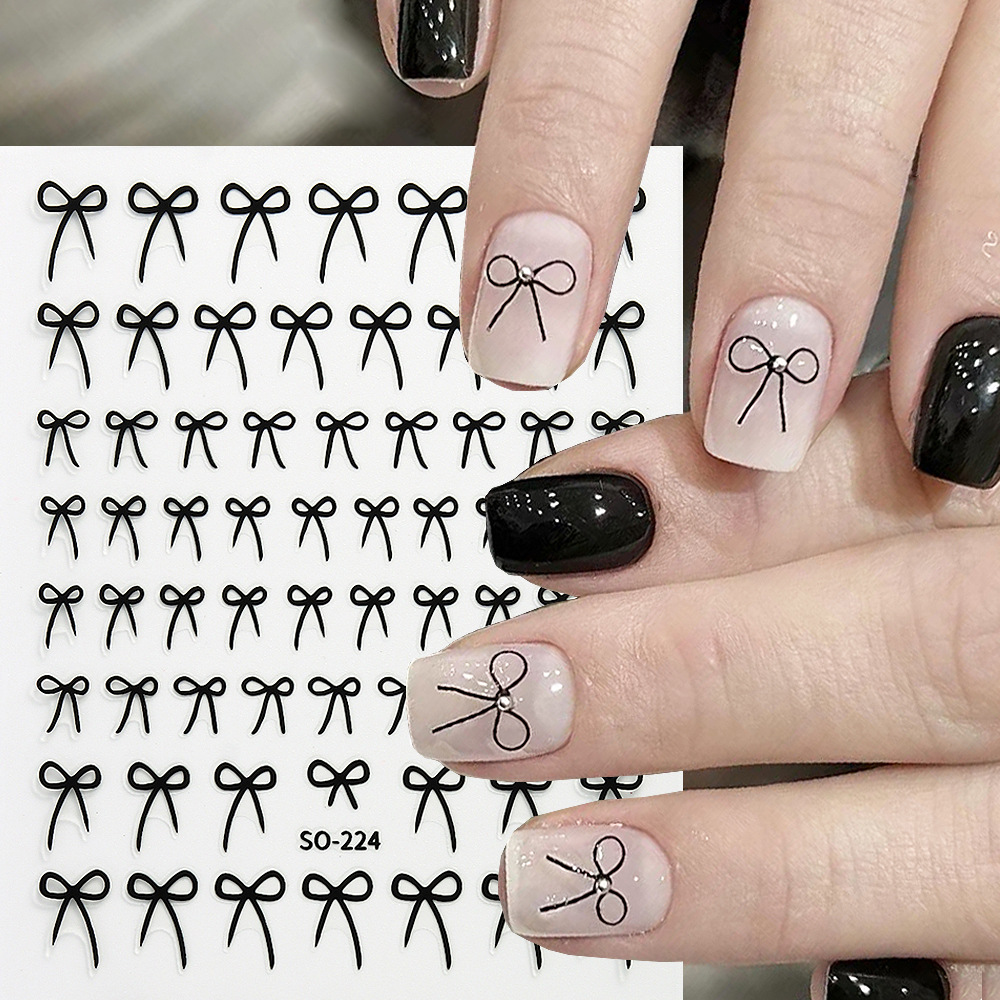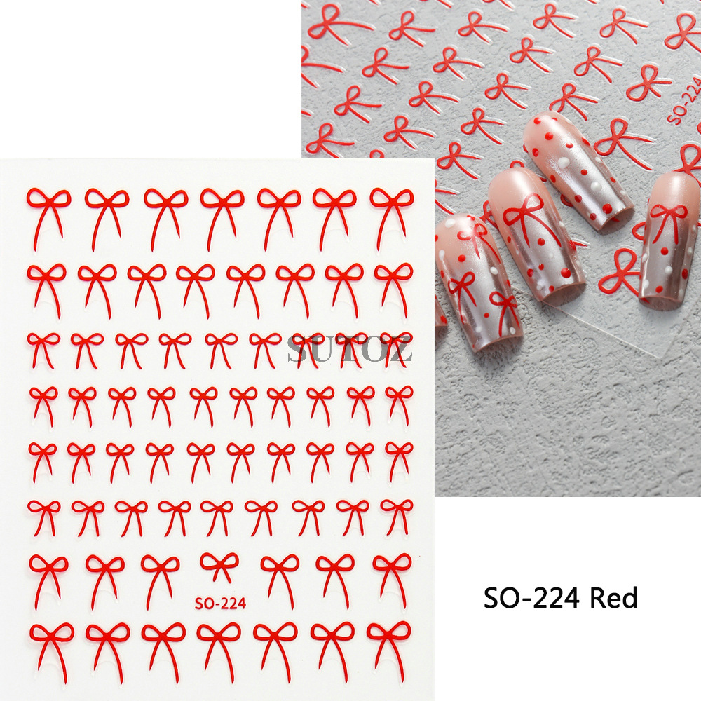 철자 Xixi 새로운 네일 아트 스티커 간단한 프랑스 스타일 요정 활 리본 빨간 콩 네일 다시 접착 스티커