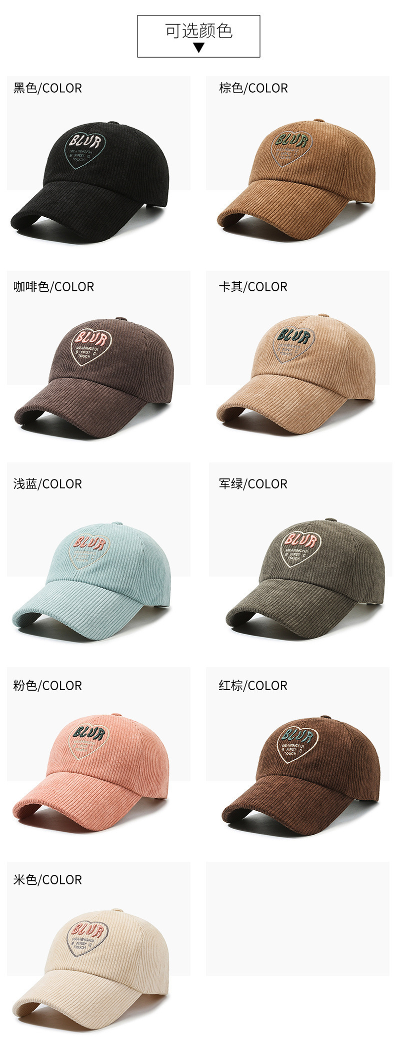 Jichu 새로운 가을과 겨울 Corduroy 러브 캡 여성 캐주얼 올 매치 페이스 쇼 작은 야외 벨벳 따뜻한 코르벳 벨벳 스틱스토어 가기