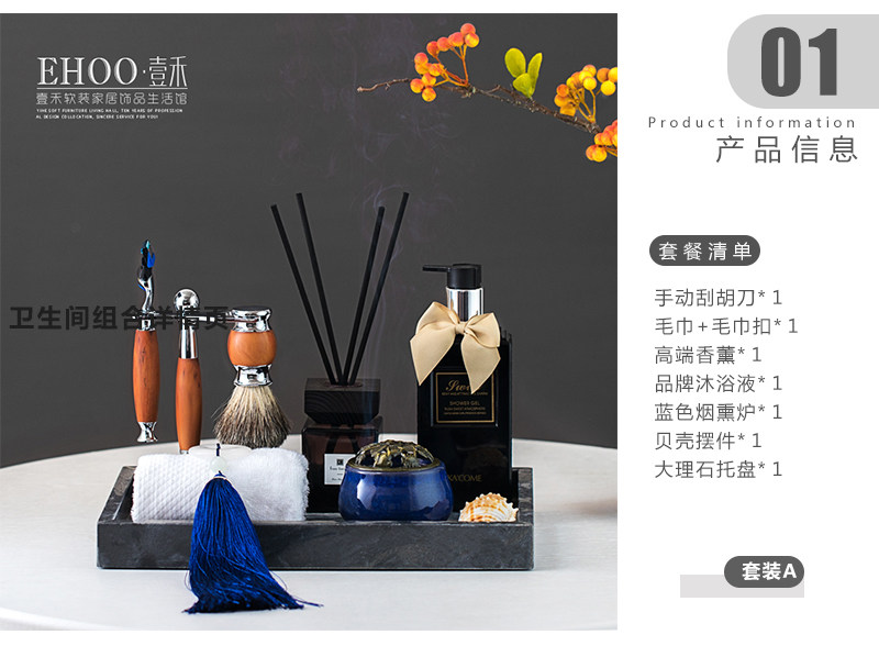 새로운 중국 욕실 워시 세트 워시 캐비닛 아로마 테라피 모델 룸 화장실 트레이 작은 장식품 홈스테이 장식