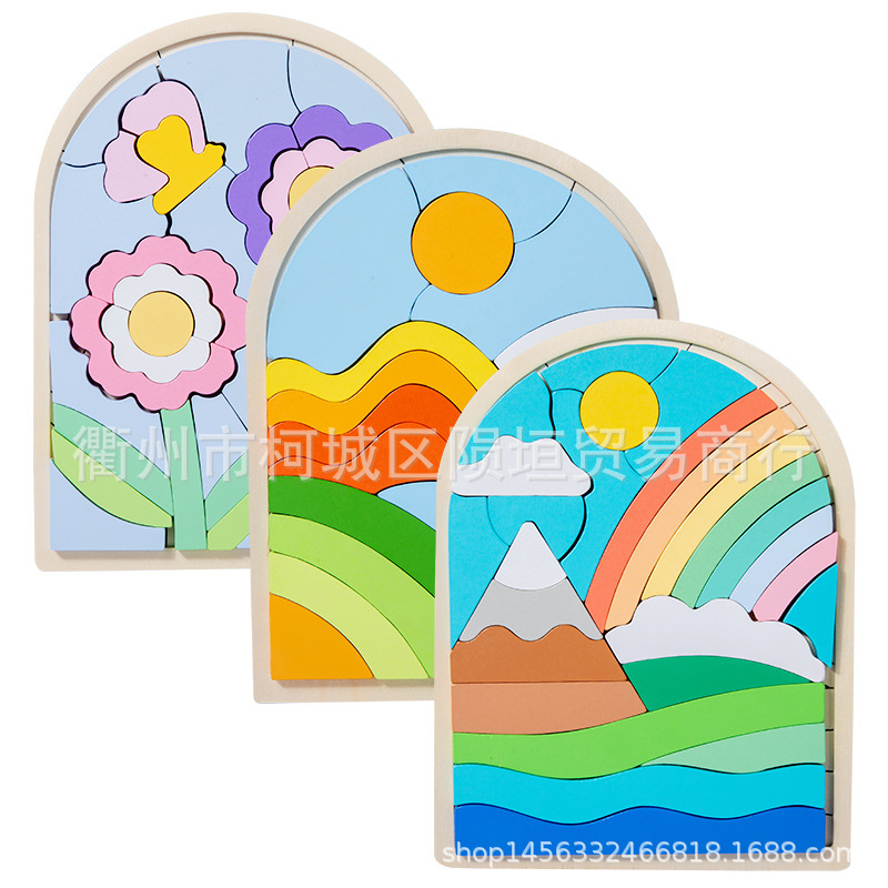 【色彩配对板】学具教具色彩形状认知拼板摆件彩虹配对板,每个拼板有板块数块,每个板块对应不同颜色不同形状,通过对应板块放置在托盘上,逐渐形成一副完整的卡通图案,对于色彩的认知,对于形状的认知,对应美术素养的认知,都有帮助。