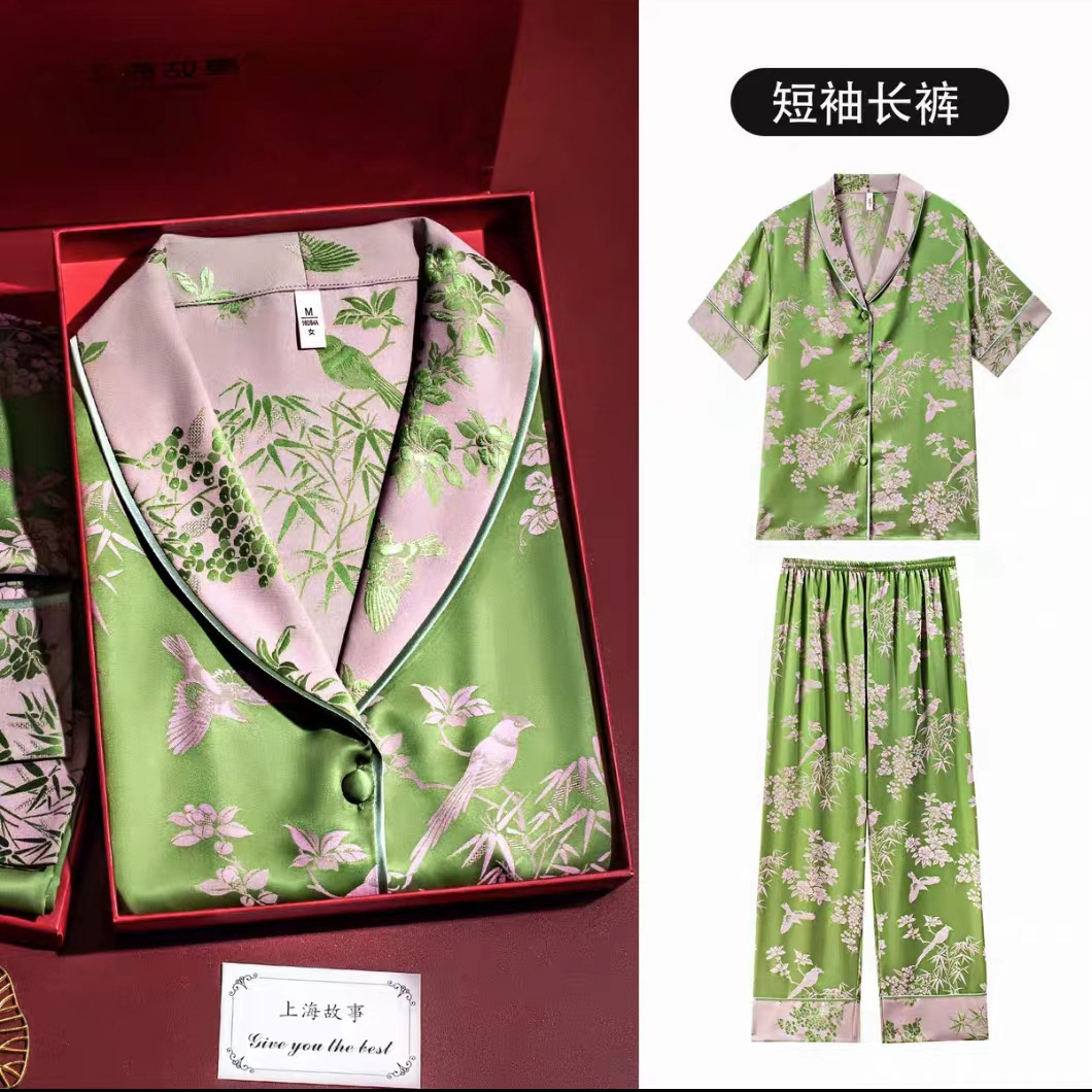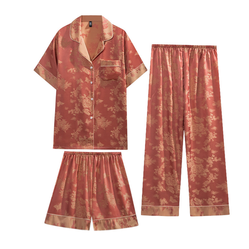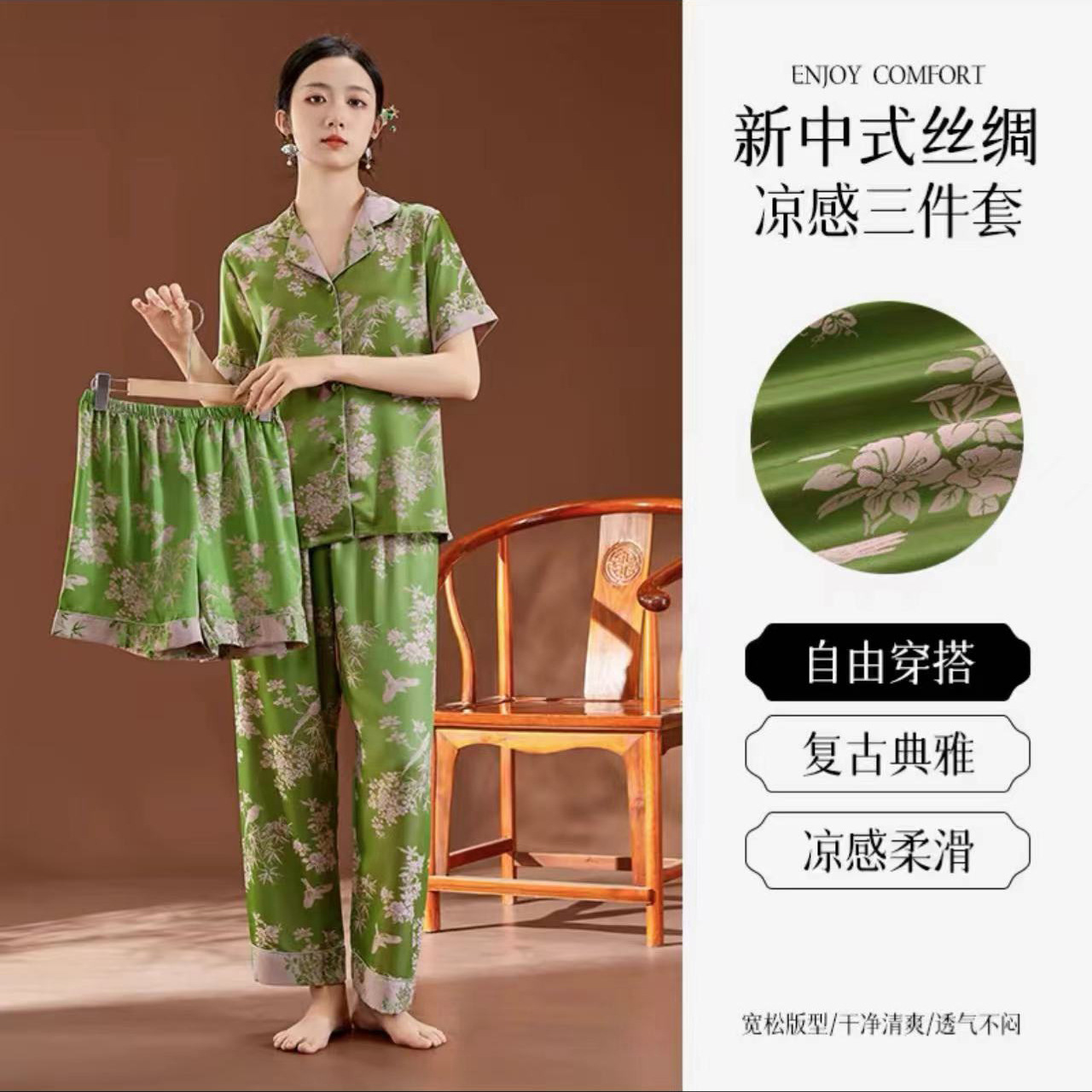 다빈치 코드 고급 잠옷, 반팔 바지, 반바지, 여성용 3종 세트, 여름용 양이온 홈웨어, 모조 실크스토어 가기