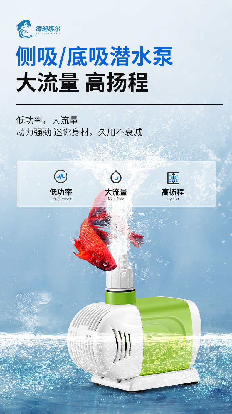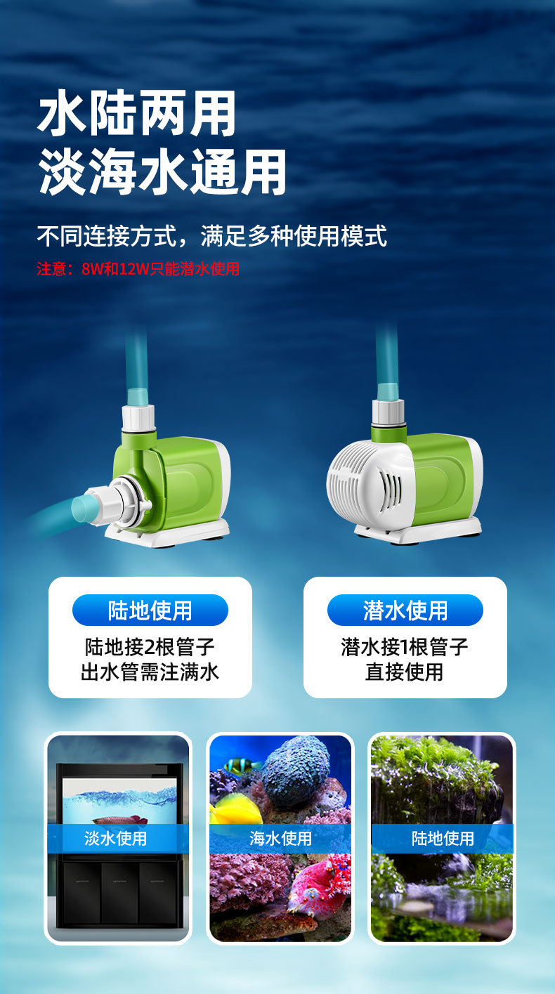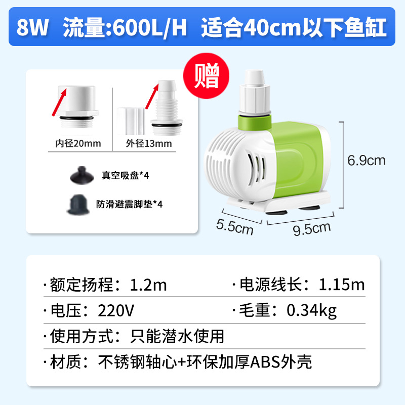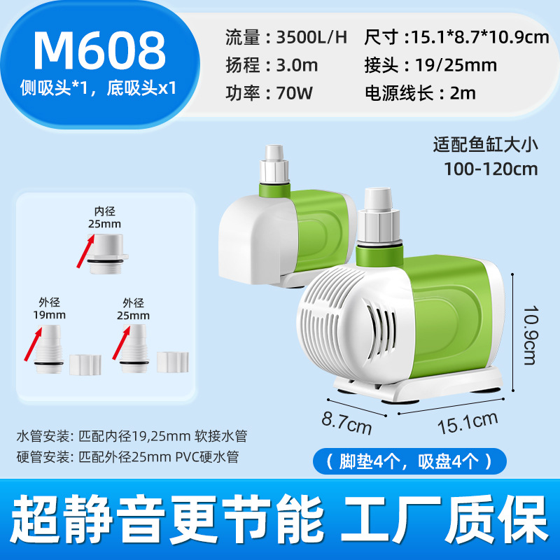 Hydiville 조용한 물고기 탱크 작은 수족관 물고기 풀 잠수 펌프 바닥 흡입 측면 흡입 수륙 양용 고정 주파수 분수