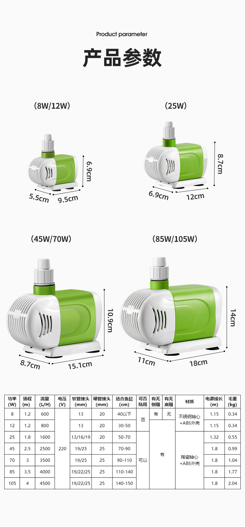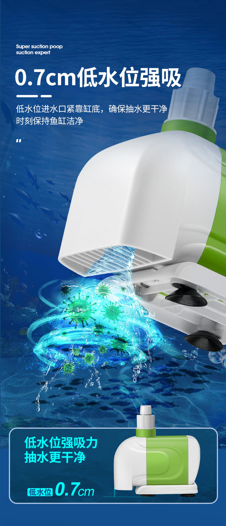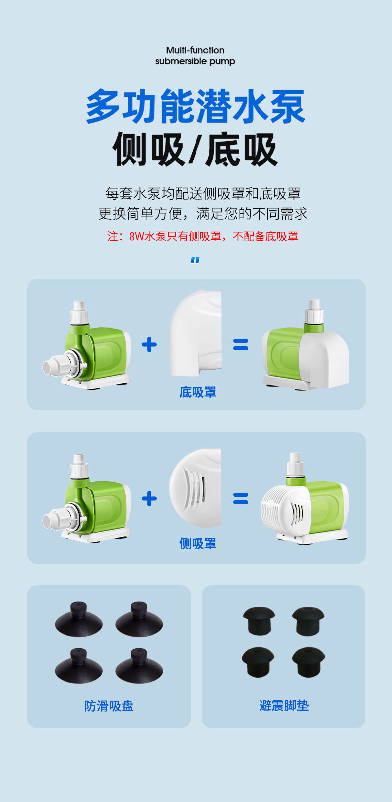 Hydiville 조용한 물고기 탱크 작은 수족관 물고기 풀 잠수 펌프 바닥 흡입 측면 흡입 수륙 양용 고정 주파수 분수