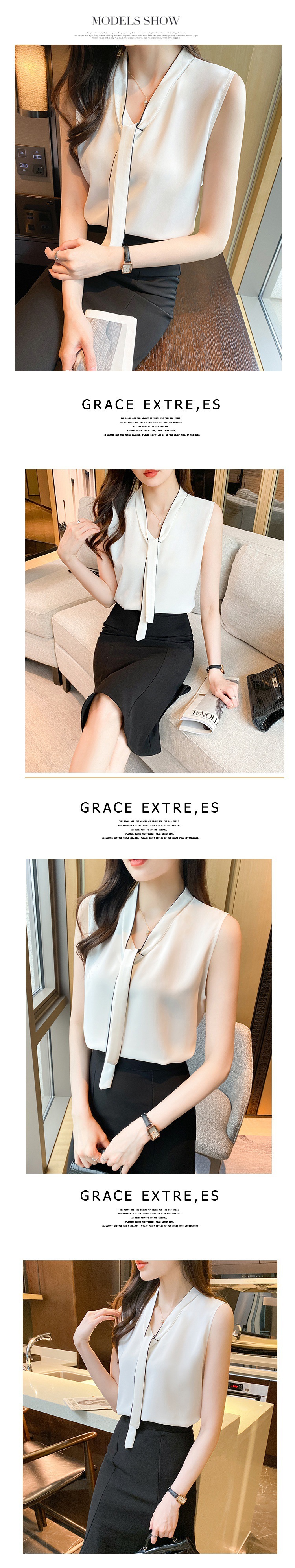 리얼 샷 쉬폰 셔츠 여성 여름 2022 새로운 패션 작은 셔츠 기질 통근 느슨한 민소매 최고 여성