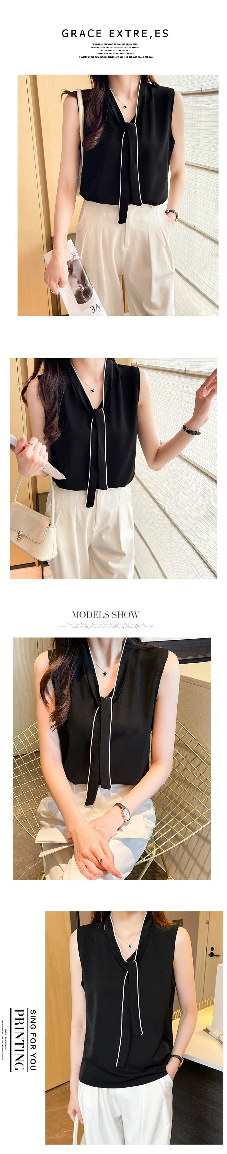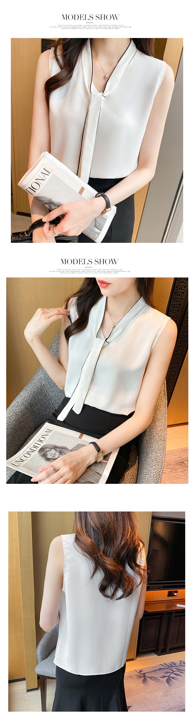 리얼 샷 쉬폰 셔츠 여성 여름 2022 새로운 패션 작은 셔츠 기질 통근 느슨한 민소매 최고 여성스토어 가기