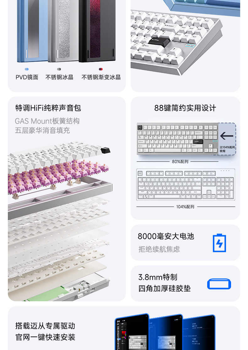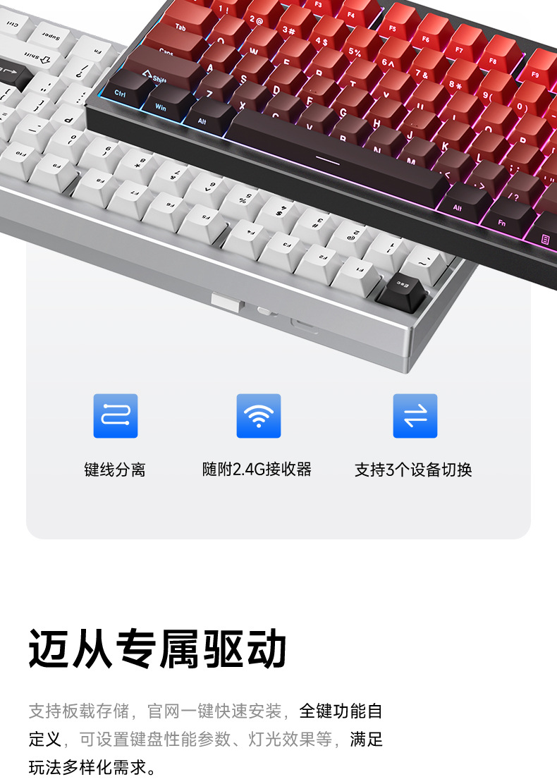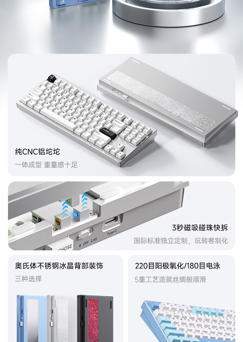 MCHOSE GX87V2 알루미늄 맞춤형 기계식 키보드 완제품 3모드 풀 키 핫 스왑 가능 키보드스토어 가기
