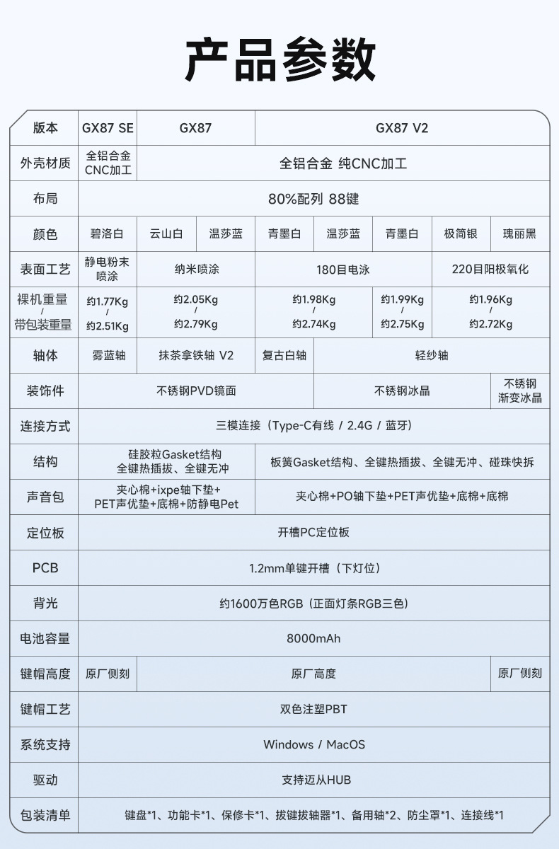 MCHOSE GX87V2 알루미늄 맞춤형 기계식 키보드 완제품 3모드 풀 키 핫 스왑 가능 키보드