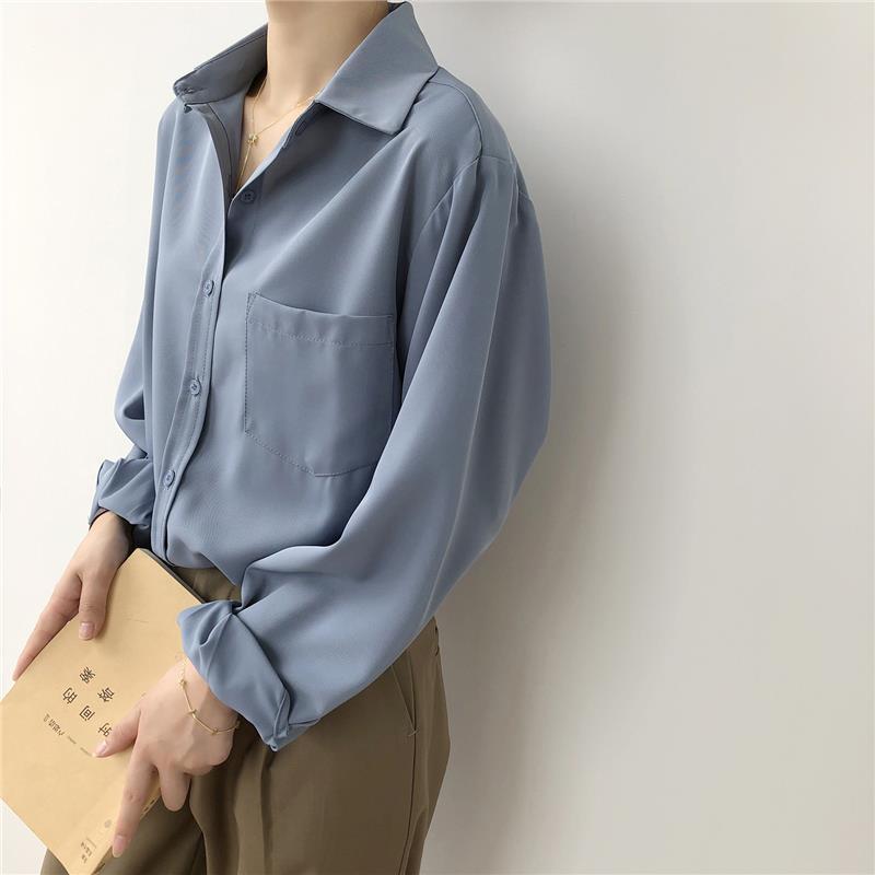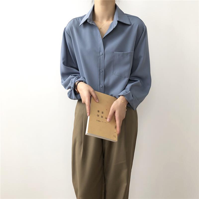 여성용 셔츠 2025 가을 새로운 한국 스타일 느슨한 단색 기질 디자인 틈새 캐주얼 다용도 긴팔 탑스토어 가기