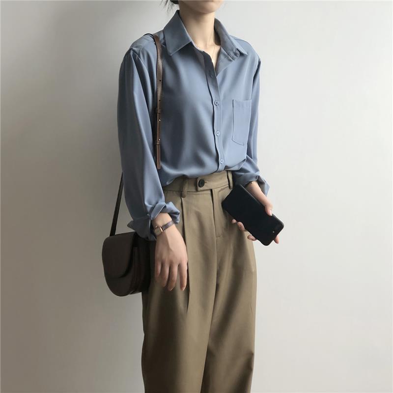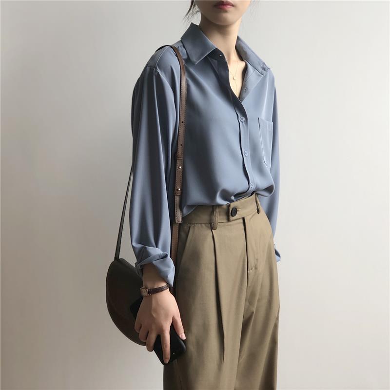 여성용 셔츠 2025 가을 새로운 한국 스타일 느슨한 단색 기질 디자인 틈새 캐주얼 다용도 긴팔 탑