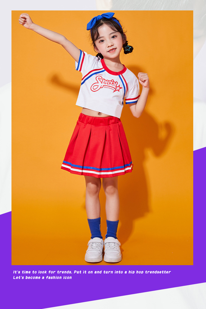 • DL13 소녀 빨간 리본 짧은 T Q09 빨간 줄무늬 치마 파란 양말