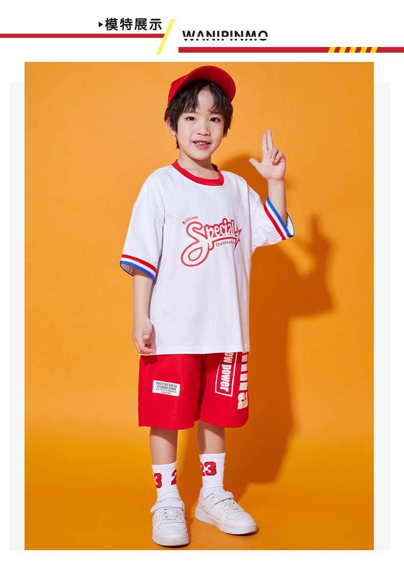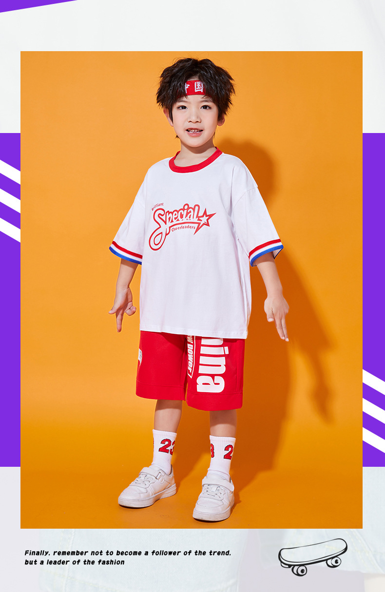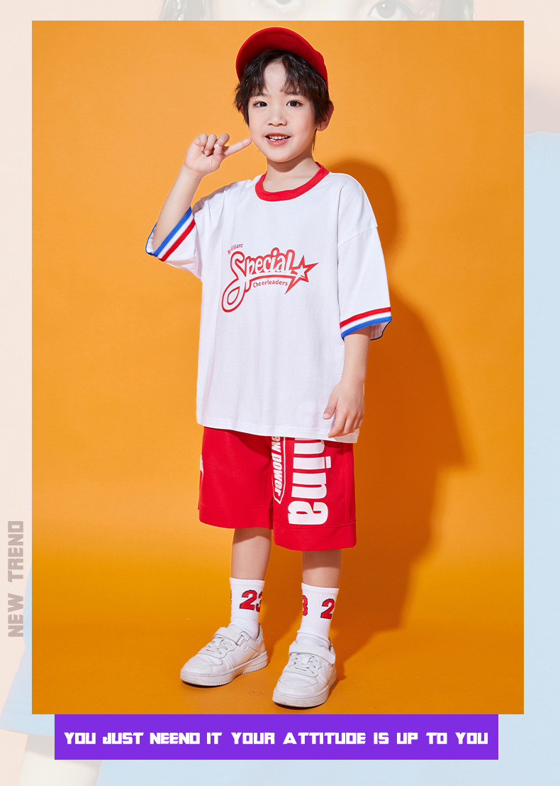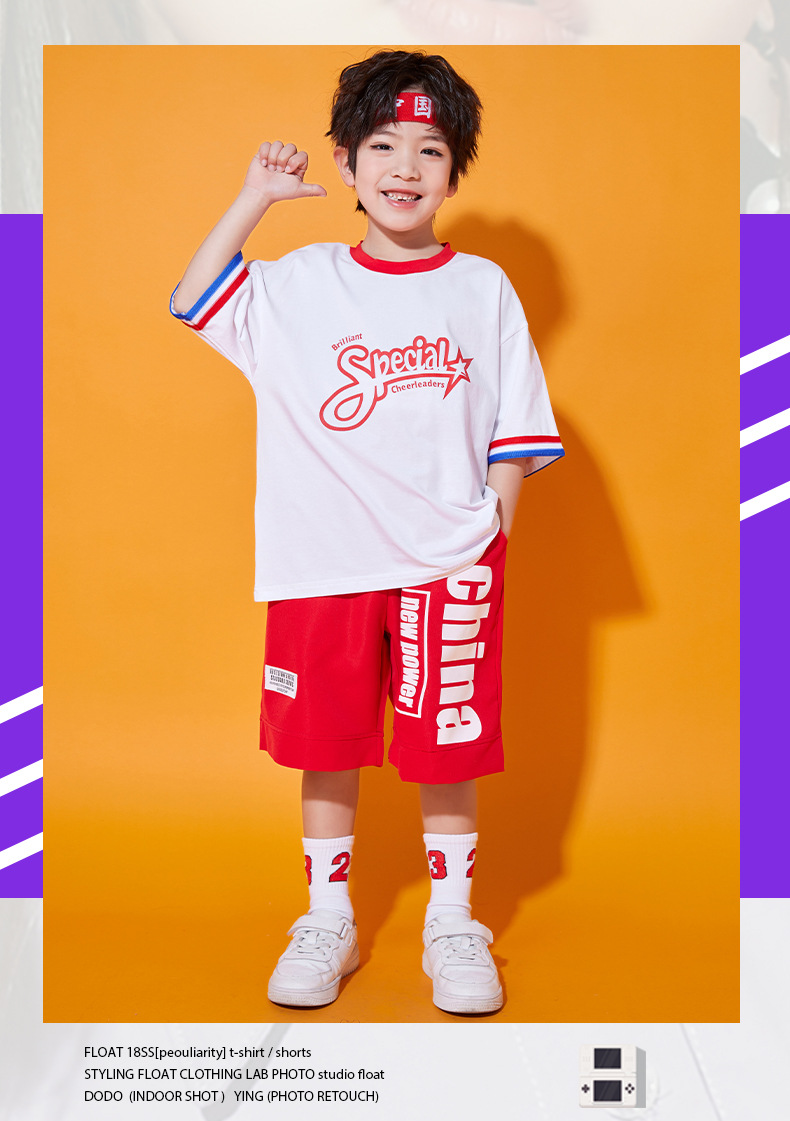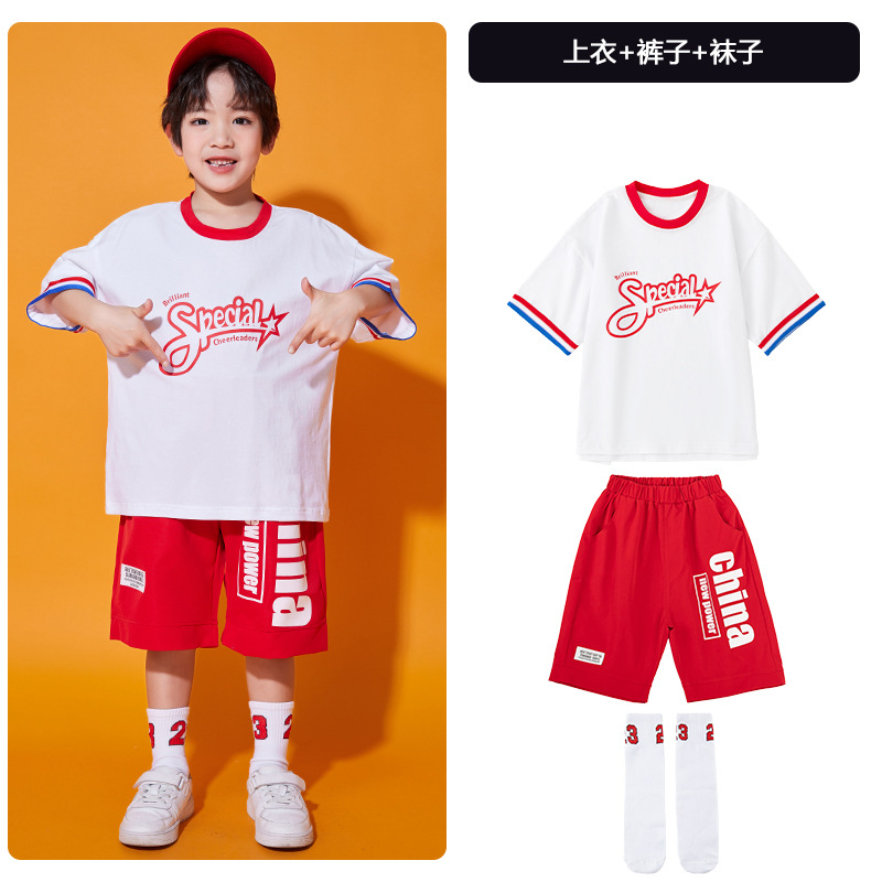 • DL13 소년 빨간 웨빙 짧은 소매 빨간 중국 반바지 흰색 튜브 양말
