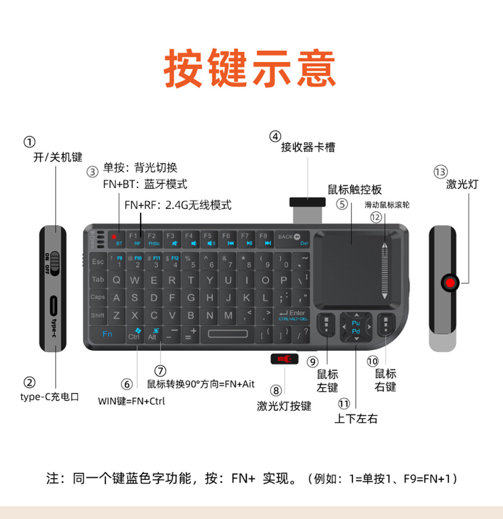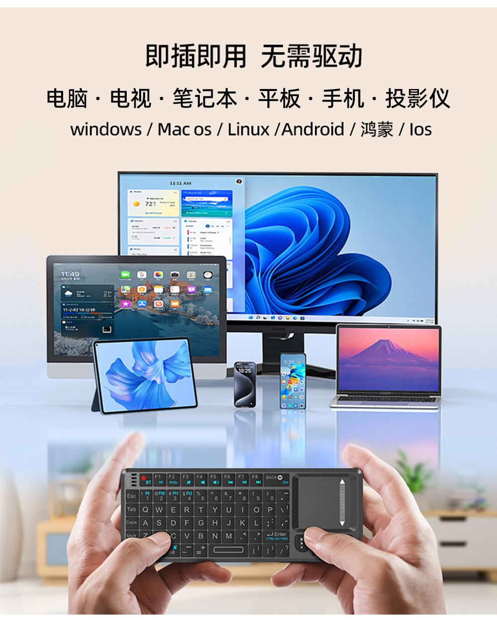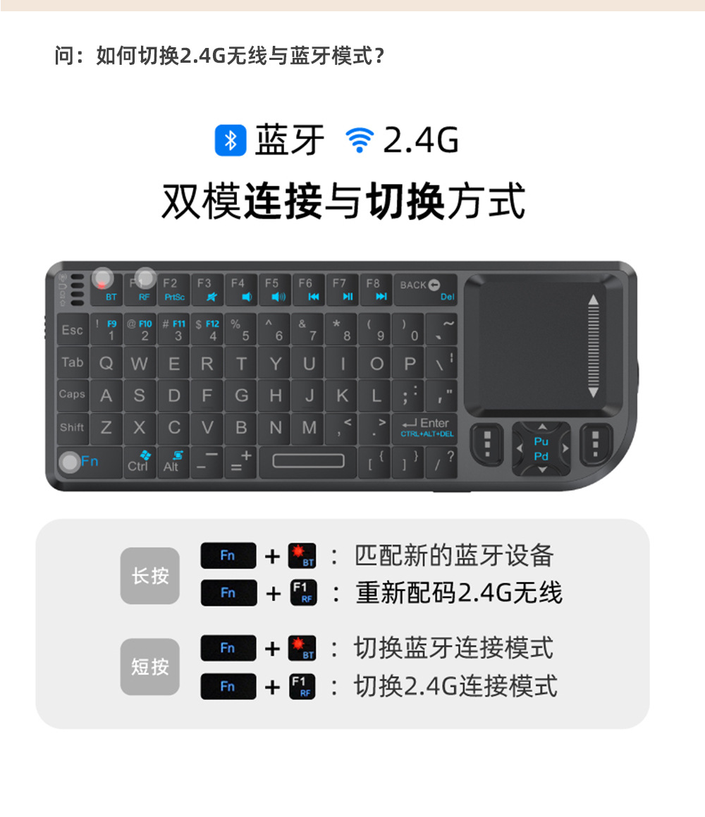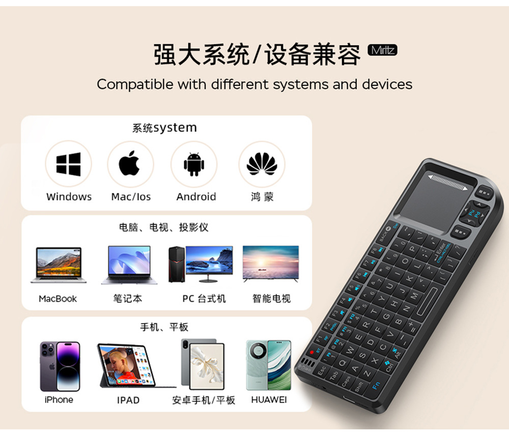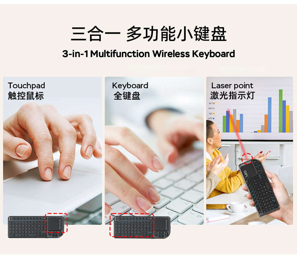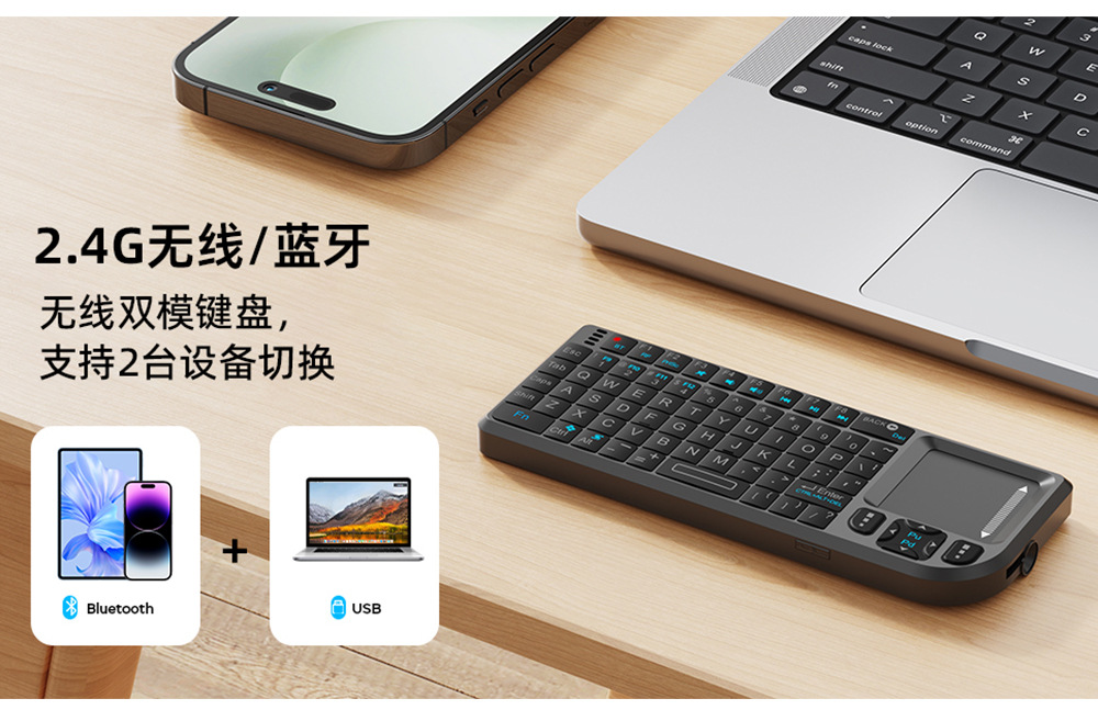 휴대 전화 태블릿 키보드에 연결된 새로운 블루투스 무선 미니 키보드 다기능 2.4G 듀얼 모드 레이저 빛