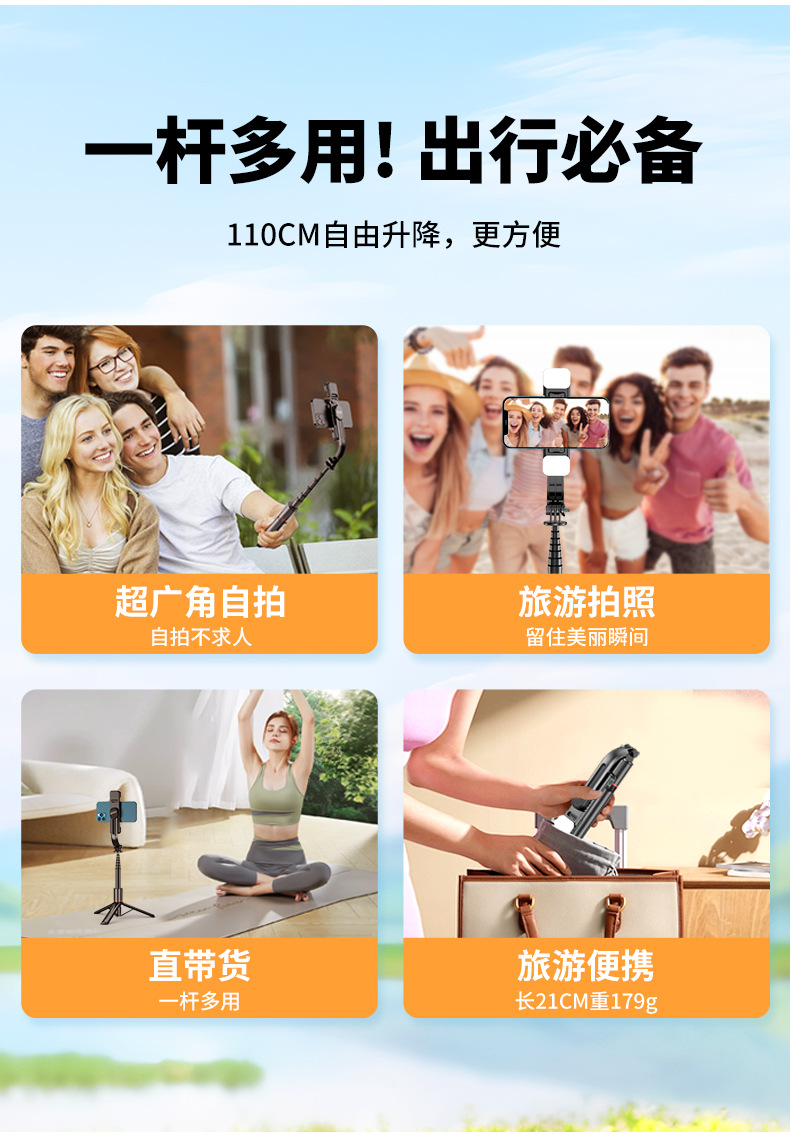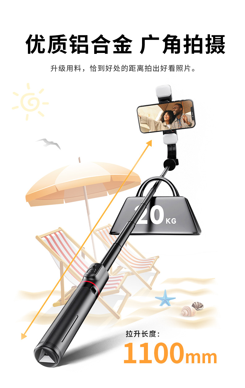 • 【L12D- 1.1m 】화이트/알루미늄 합금 샤프트 + 삼각대 + 블루투스 리모컨 + 듀얼 뷰티 필라이트