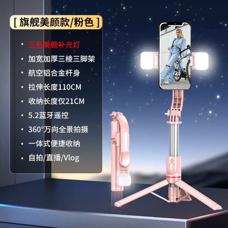 • 【L12D- 1.1m 】핑크/알루미늄 합금 샤프트 + 삼각대 + 블루투스 리모컨 + 듀얼 뷰티 필 라이트