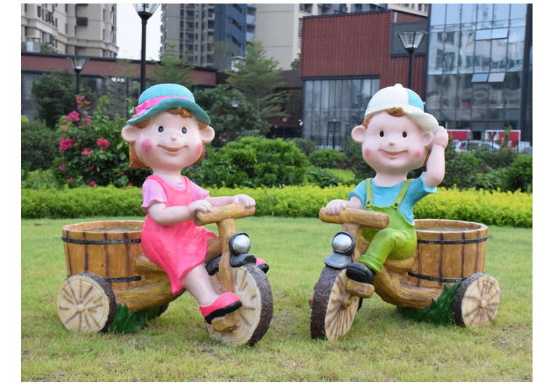 만화 사이클링 어린이 꽃 냄비 정원 꽃 Vat 빌라 정원 유리 섬유 강화 플라스틱 장식품 유치원 안뜰 풍경 장식