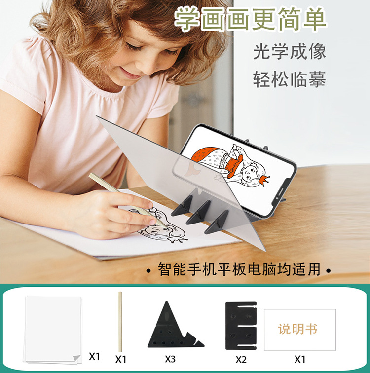 국경 투명 드로잉 보드 블랙 기술 광학 이미징 드로잉 도구 휴대 전화 홀더 어린이 물리 과학 및 교육 장난감스토어 가기