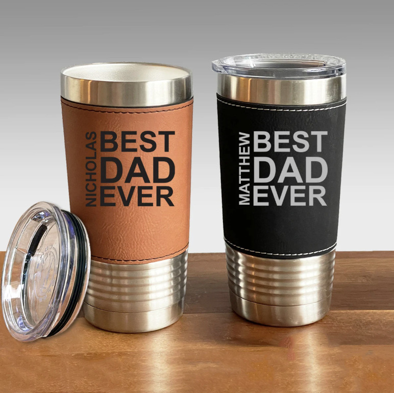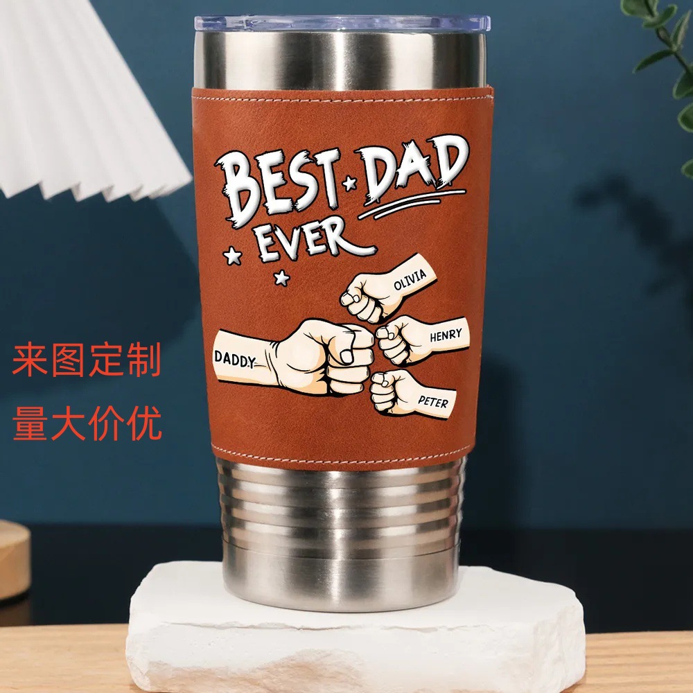 Amazon DAD 가죽 케이스 보온병 컵 사진 인쇄 20oz 아버지의 날 크리스마스 선물 대용량 스테인레스 스틸
