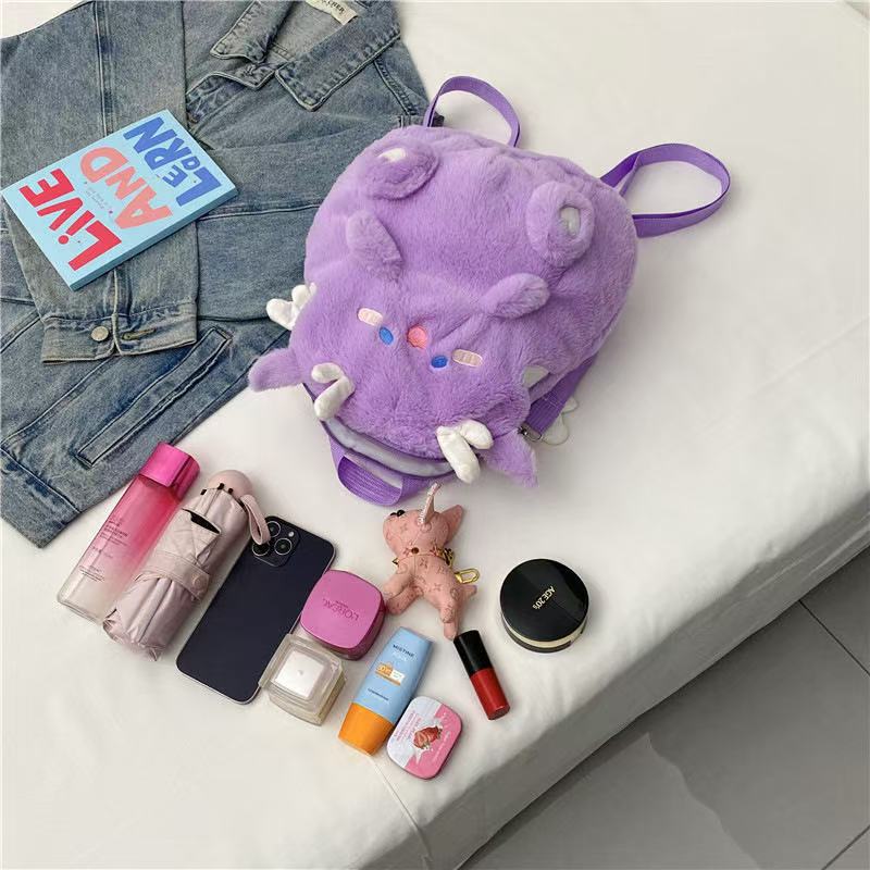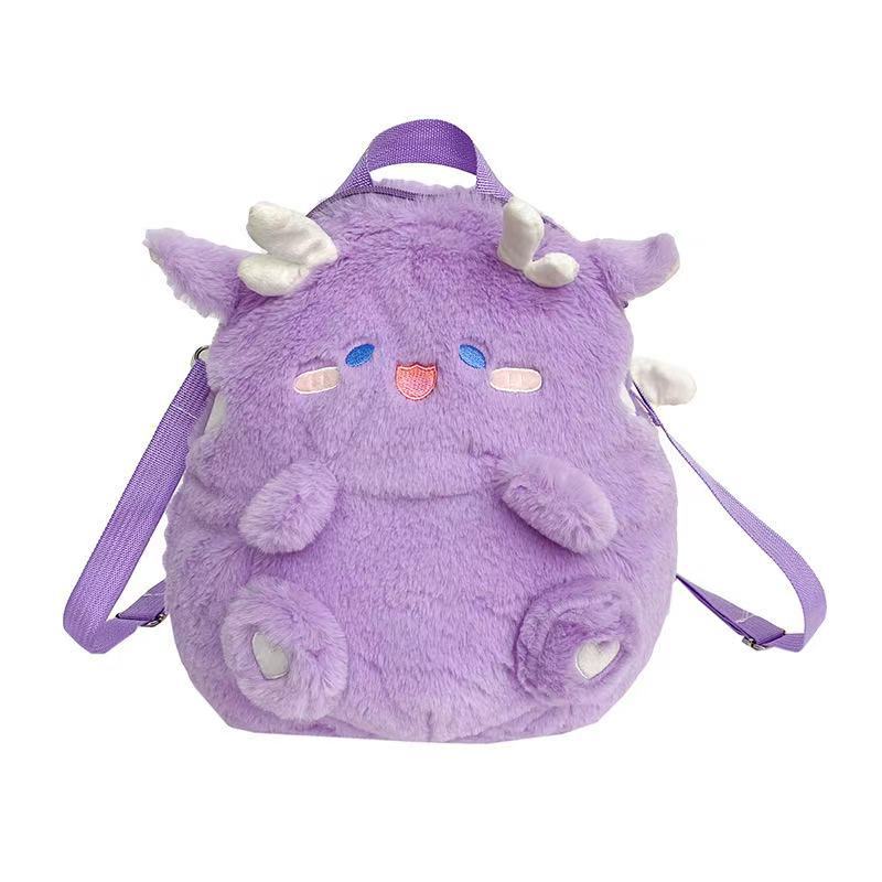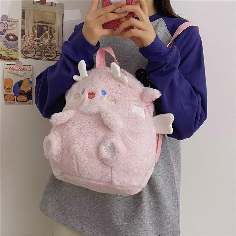 귀여운 뚱뚱한 용 모양의 봉제 백팩 소녀 감성 인형 가방 대용량 어린이 백팩 만화 봉제 가방