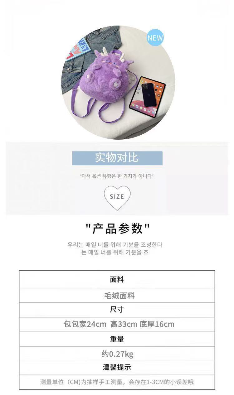 귀여운 뚱뚱한 용 모양의 봉제 백팩 소녀 감성 인형 가방 대용량 어린이 백팩 만화 봉제 가방스토어 가기