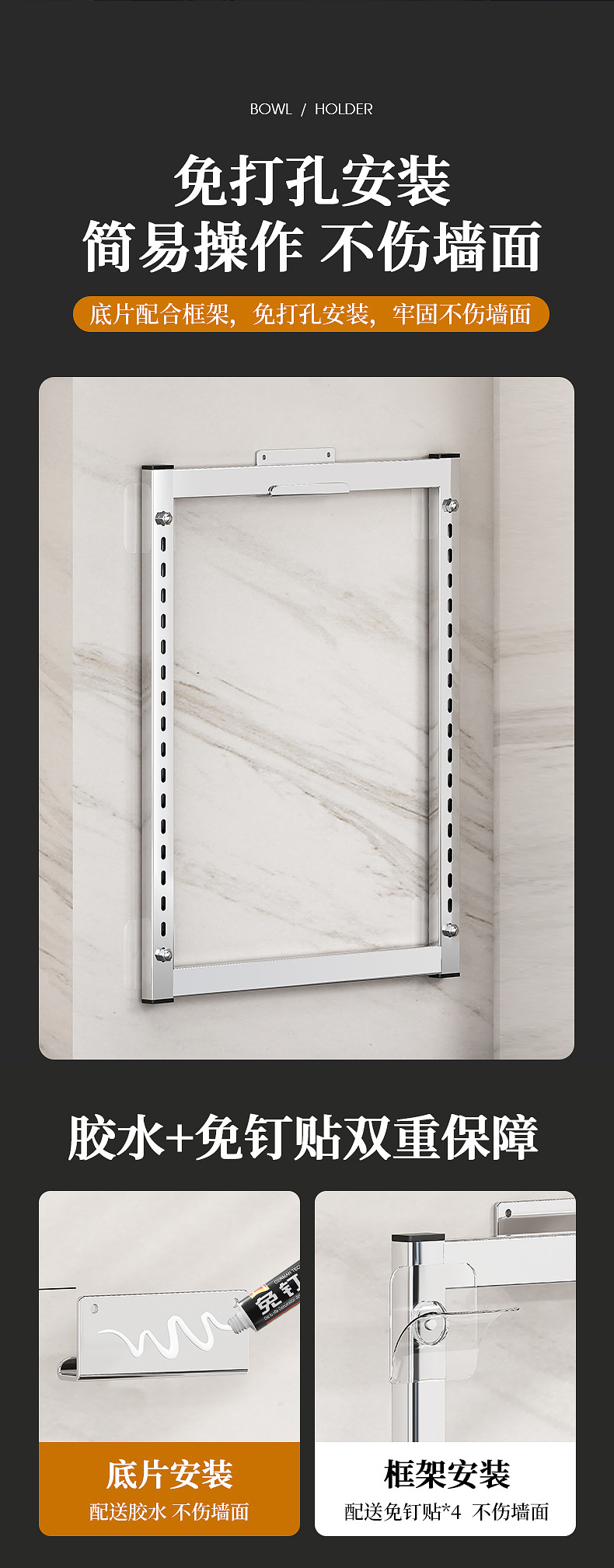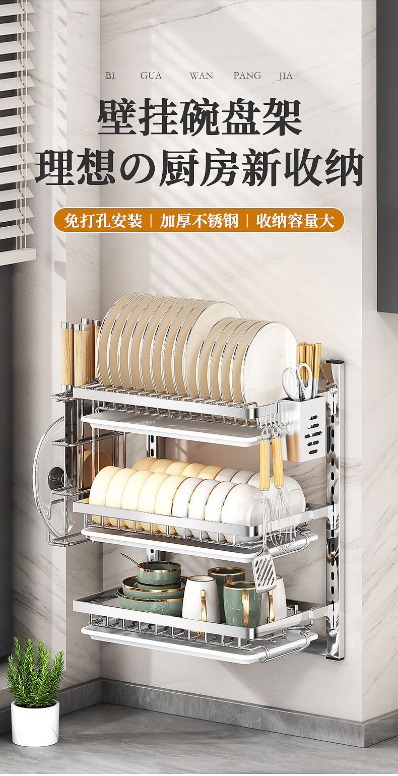 厨房墙上碗碟收纳洗碗槽置物架水槽上方碗架壁挂锅架不锈钢沥水架