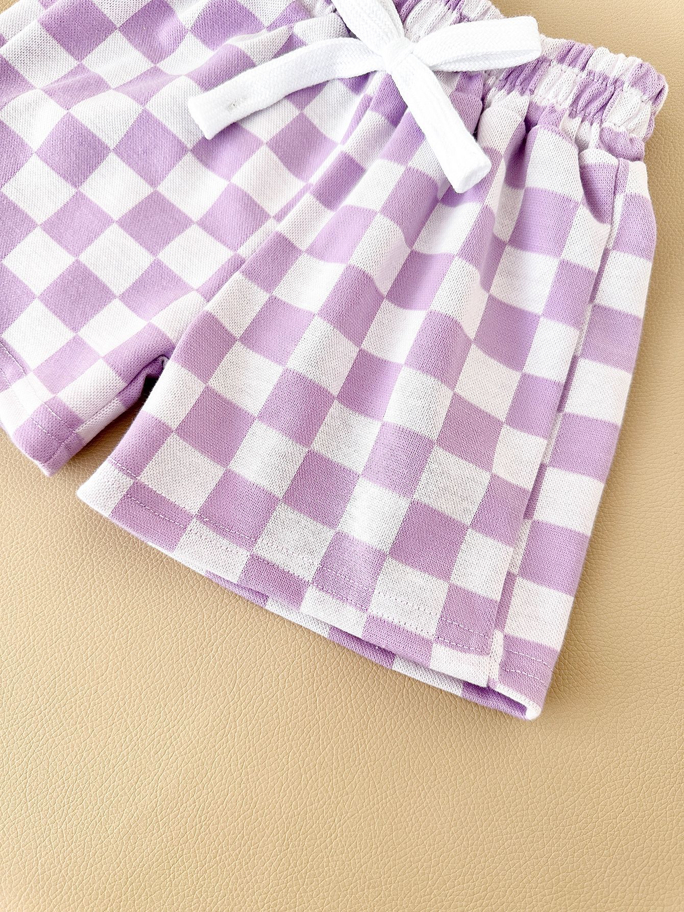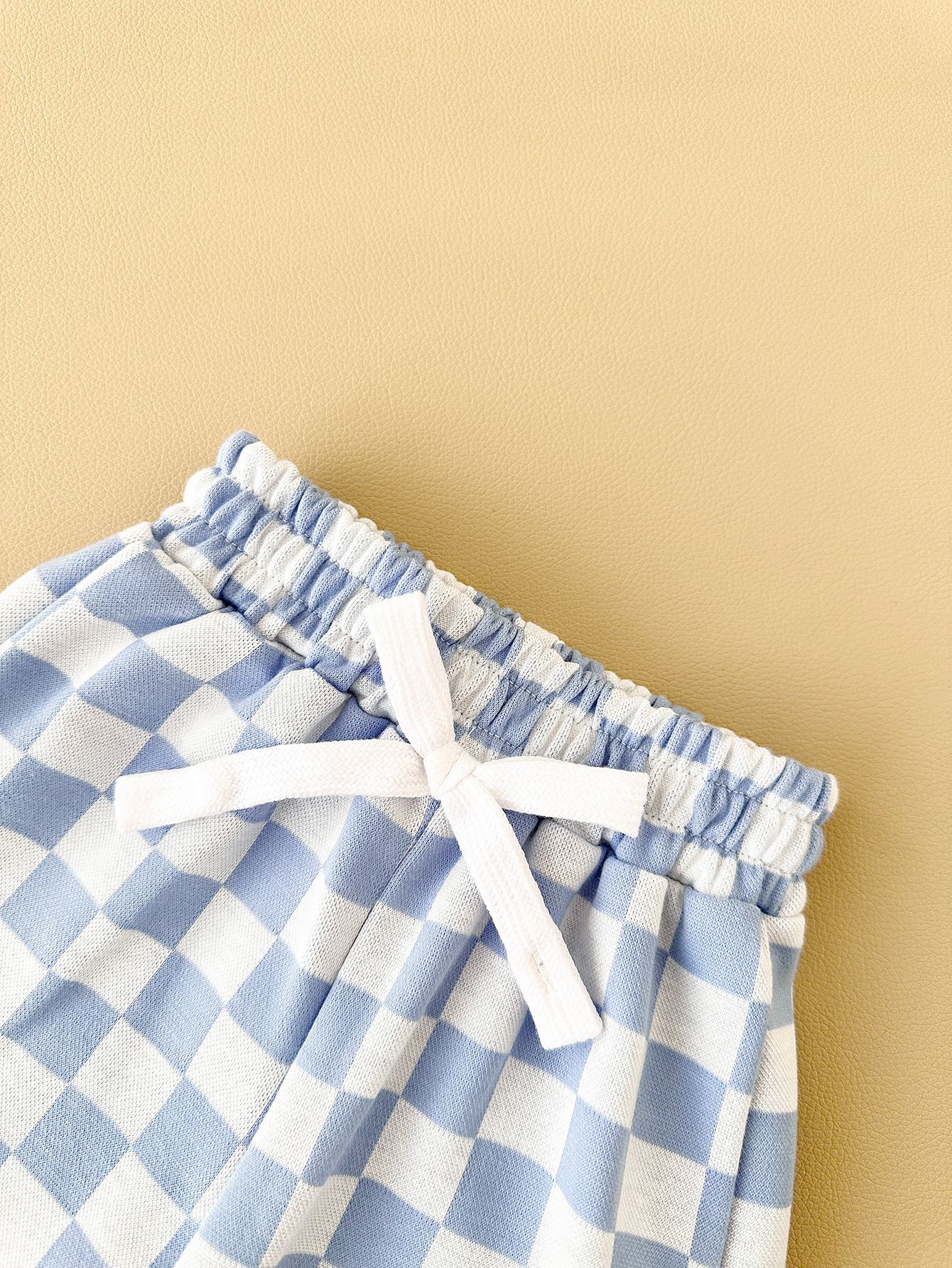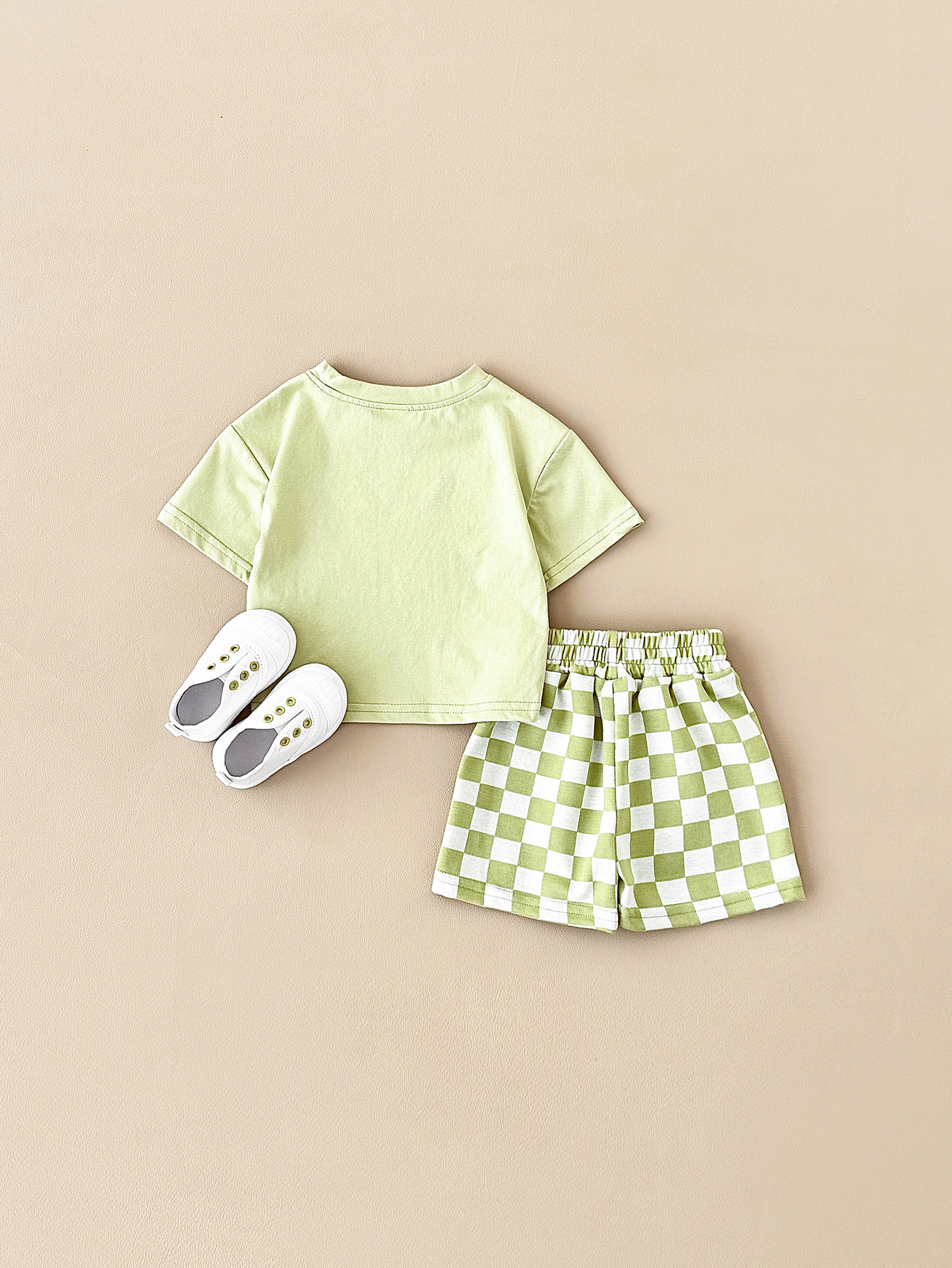 어린이 캐주얼 여름 세트 아기 체크 보드 바지 투피스 솔리드 컬러 티셔츠 의류 크로스 보더 핫 세일