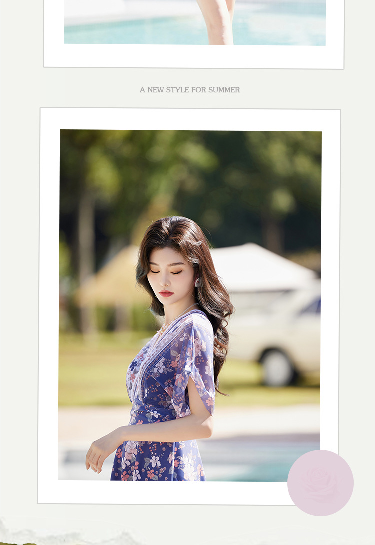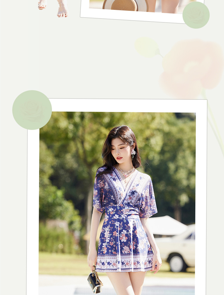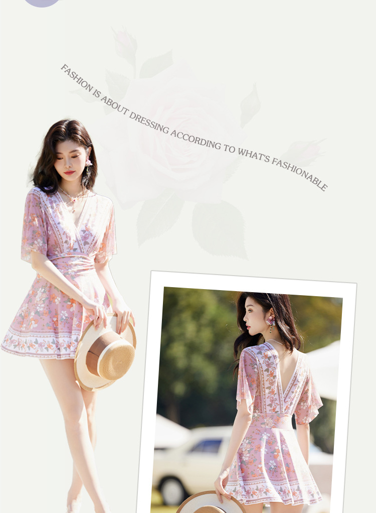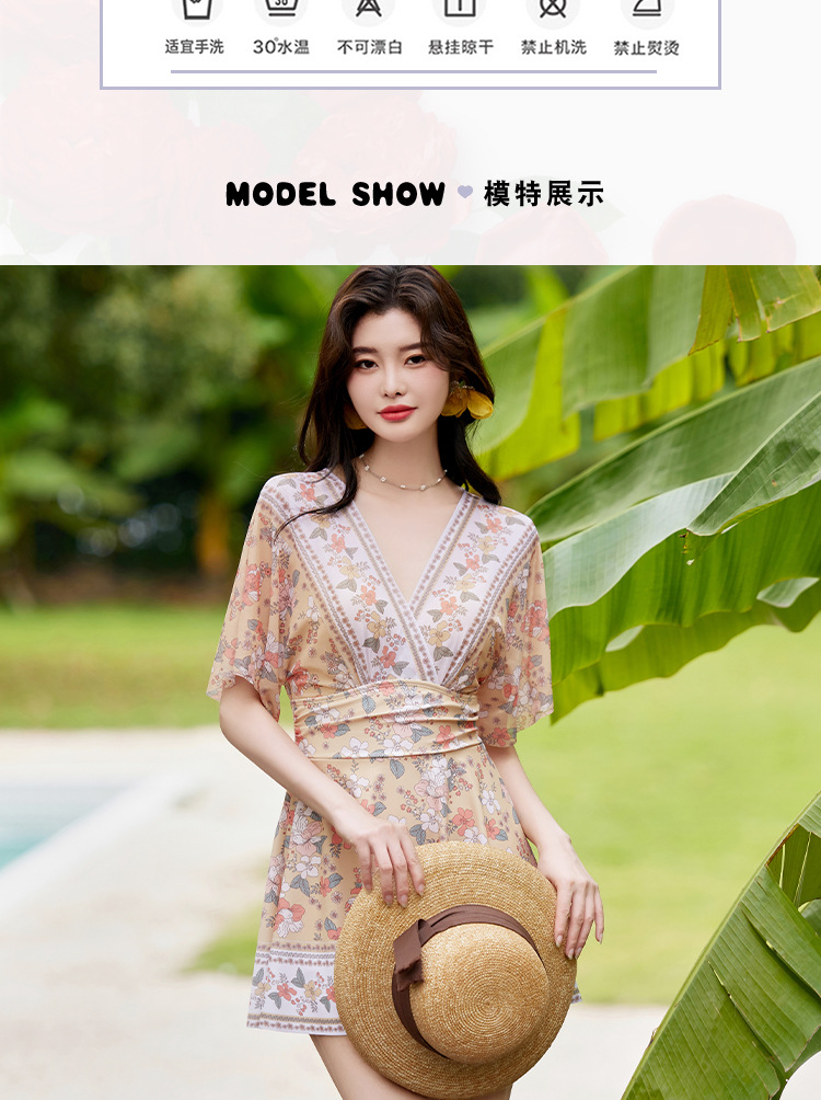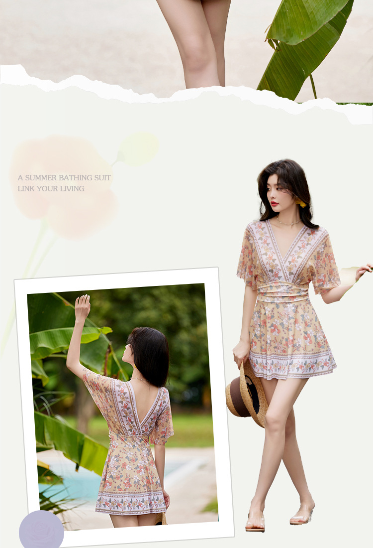 수영복 여성용 V 넥 여름 원피스 스커트 미드 슬리브 인 스타일 슬리밍 벨리 커버 하이 허리 수영복 유행 수영복 재고스토어 가기