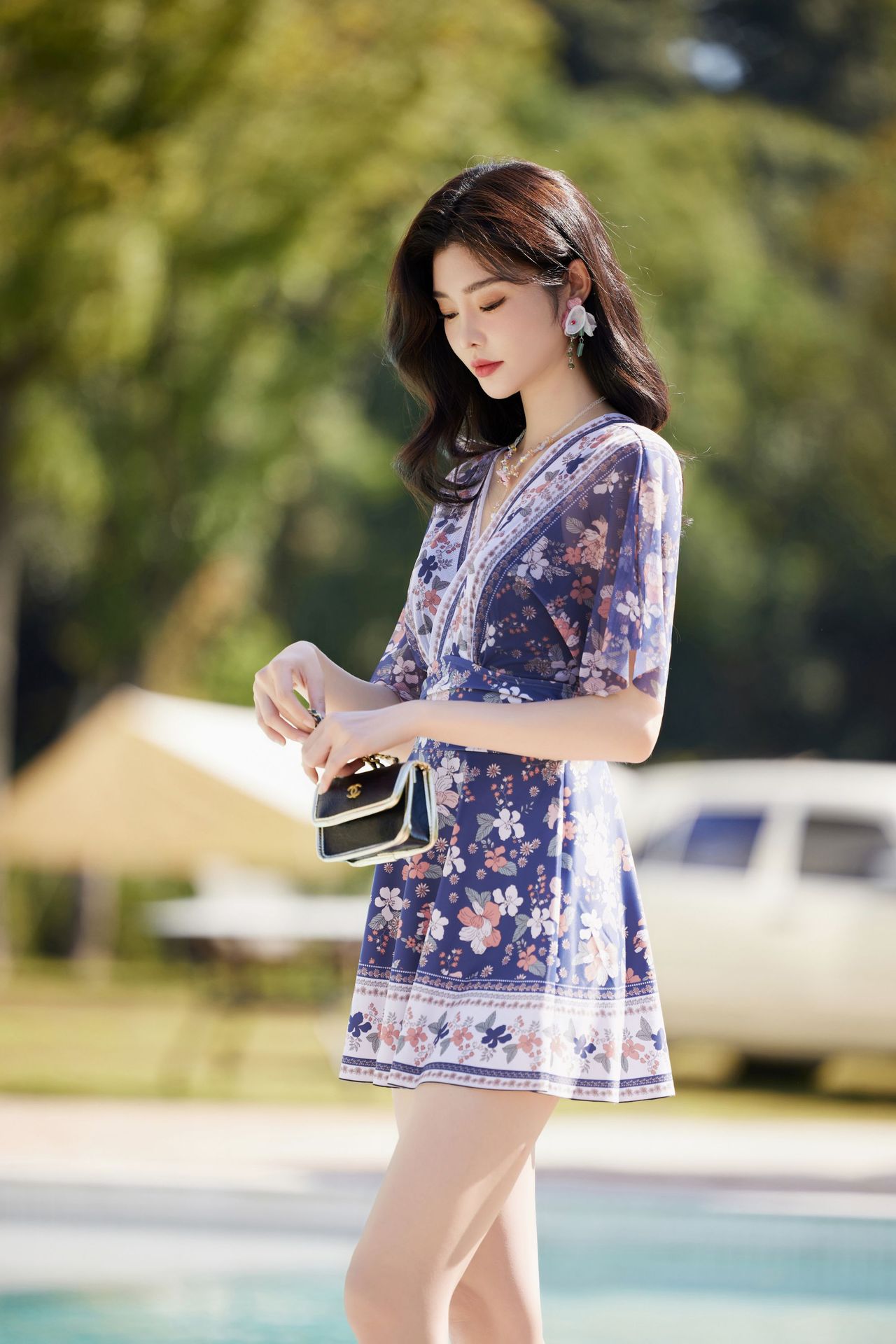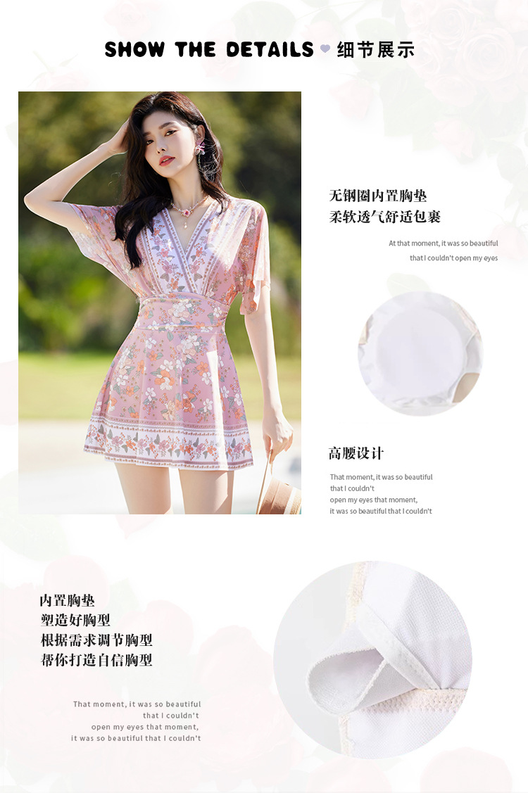 수영복 여성용 V 넥 여름 원피스 스커트 미드 슬리브 인 스타일 슬리밍 벨리 커버 하이 허리 수영복 유행 수영복 재고