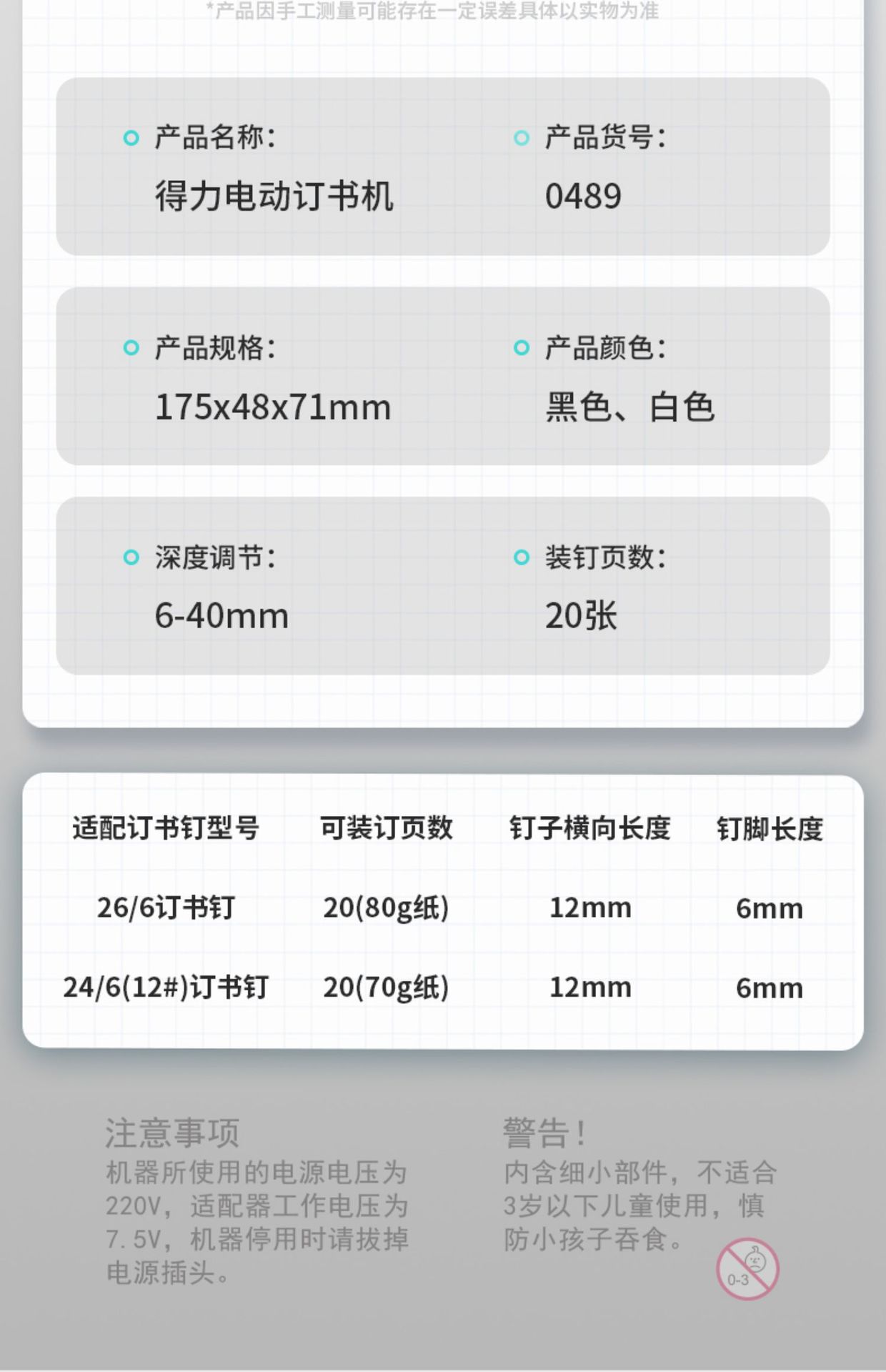델리 0489 자동 스테이플러 지능형 유도 전기 스테이플러 자동 스테이플러 학생 사무실