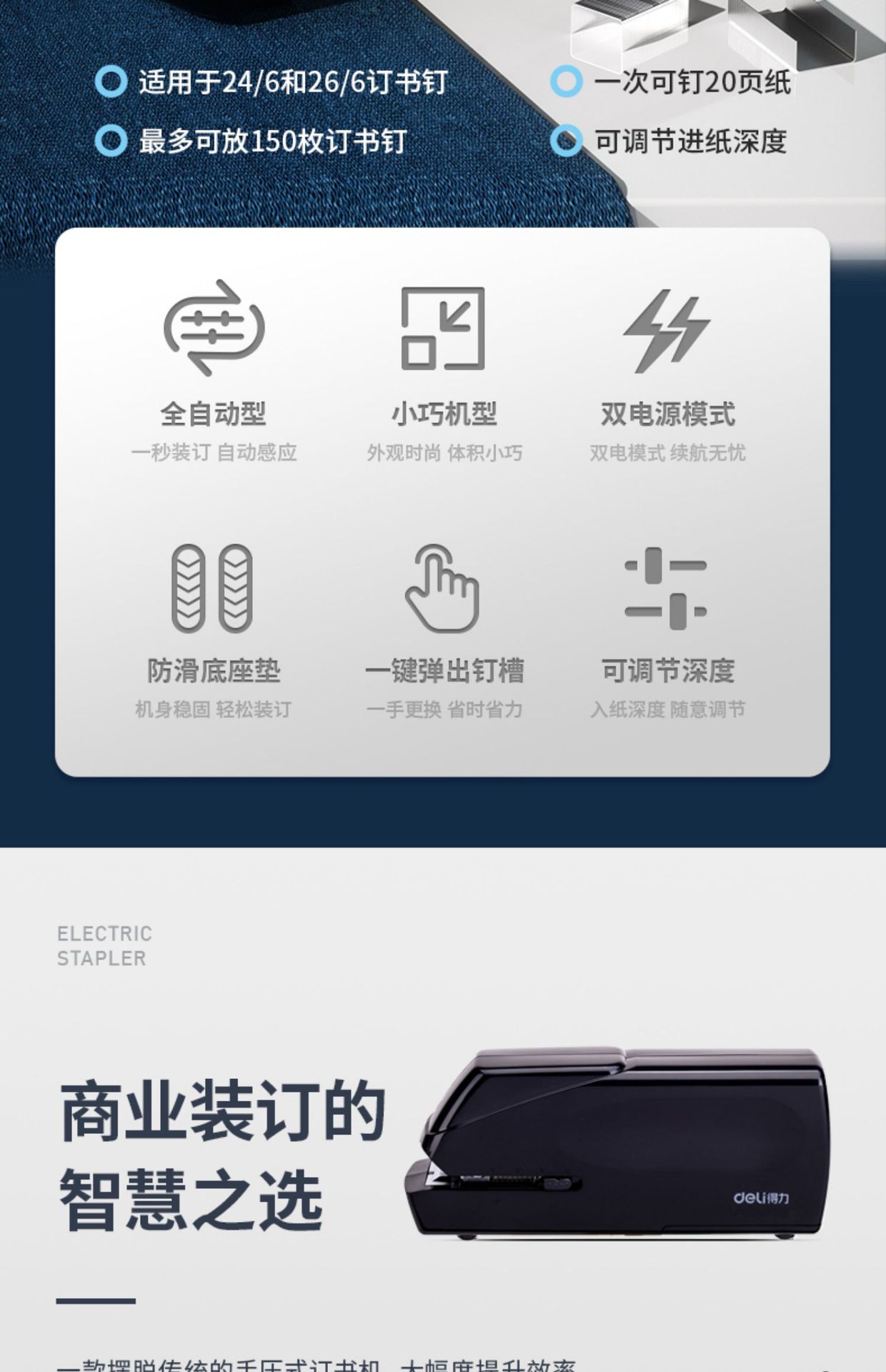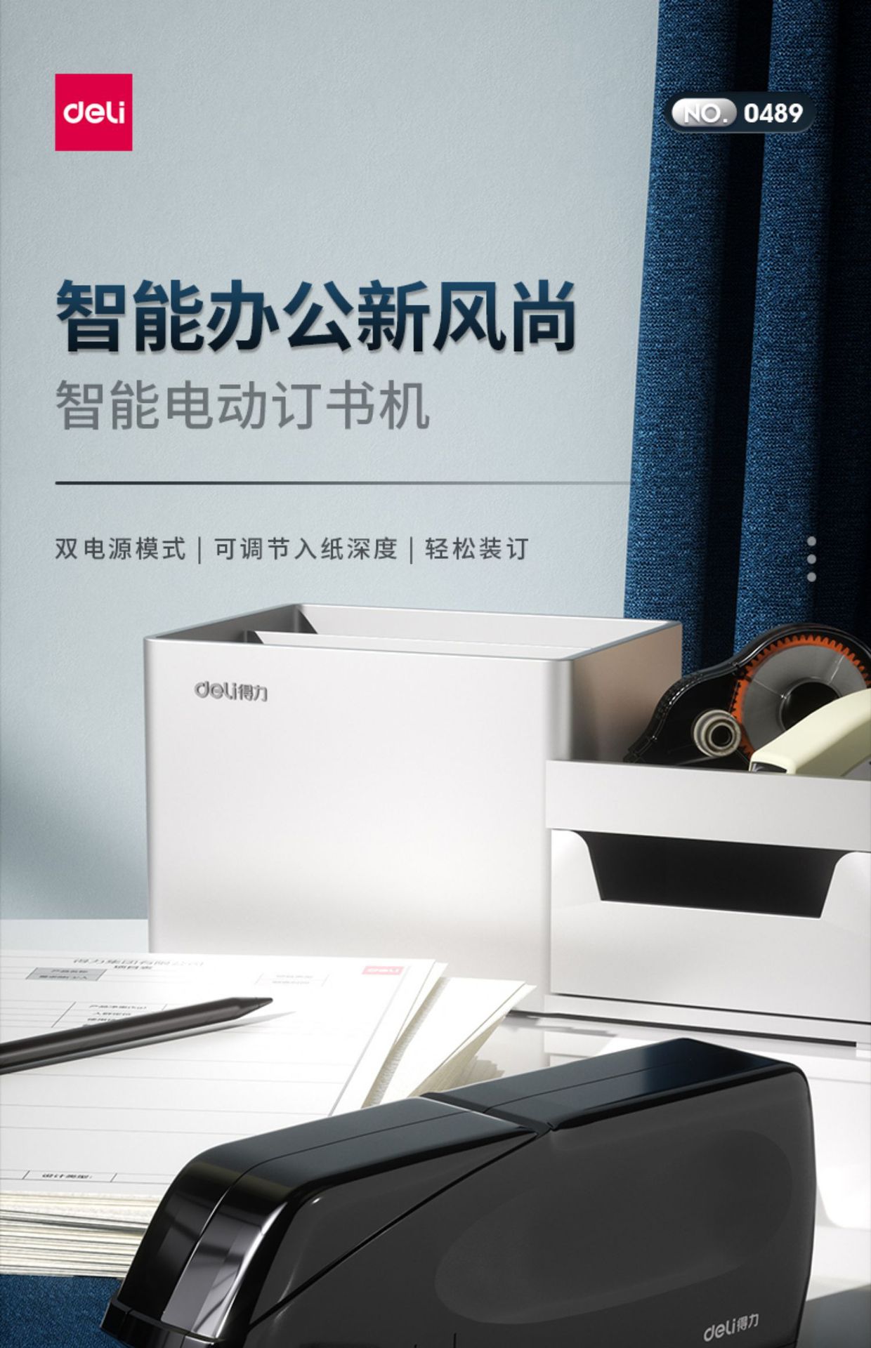 델리 0489 자동 스테이플러 지능형 유도 전기 스테이플러 자동 스테이플러 학생 사무실스토어 가기