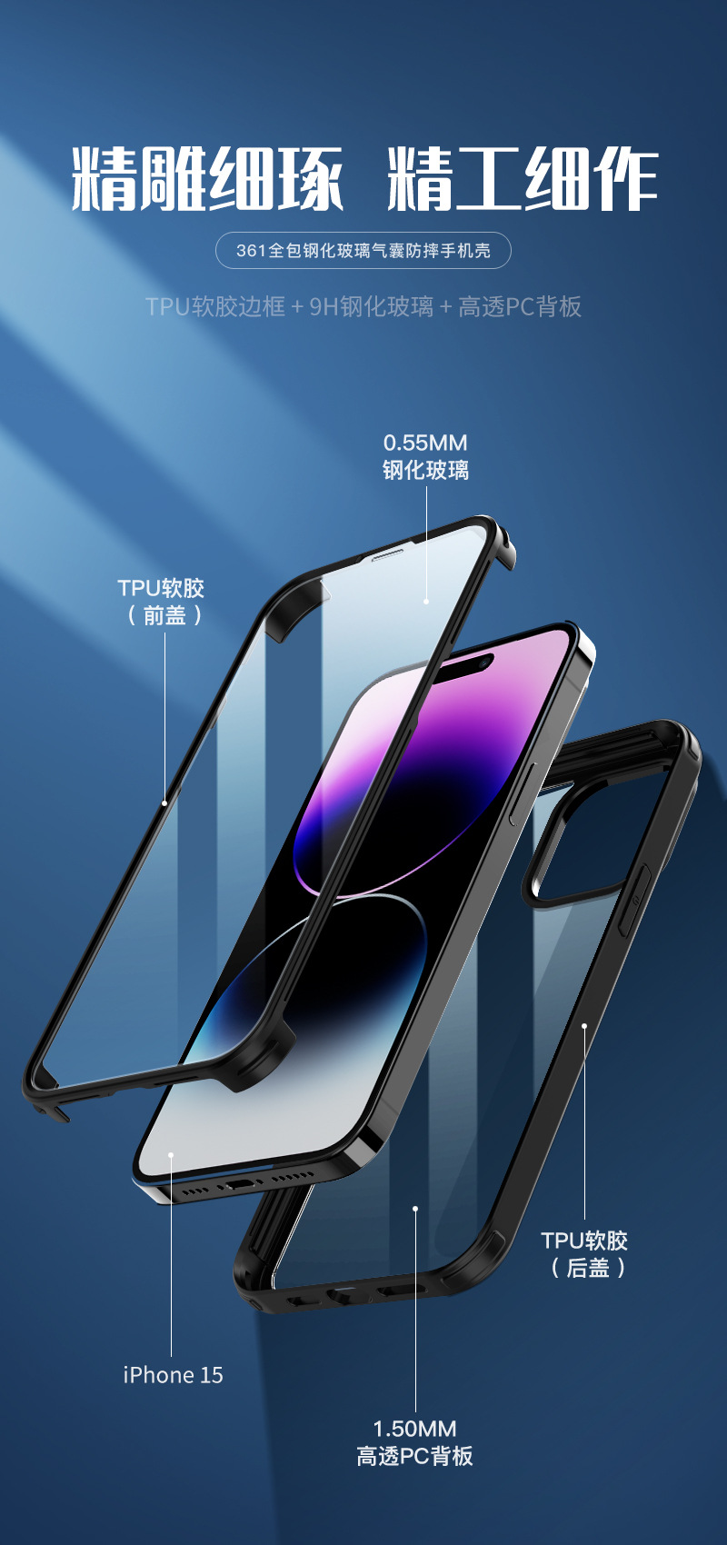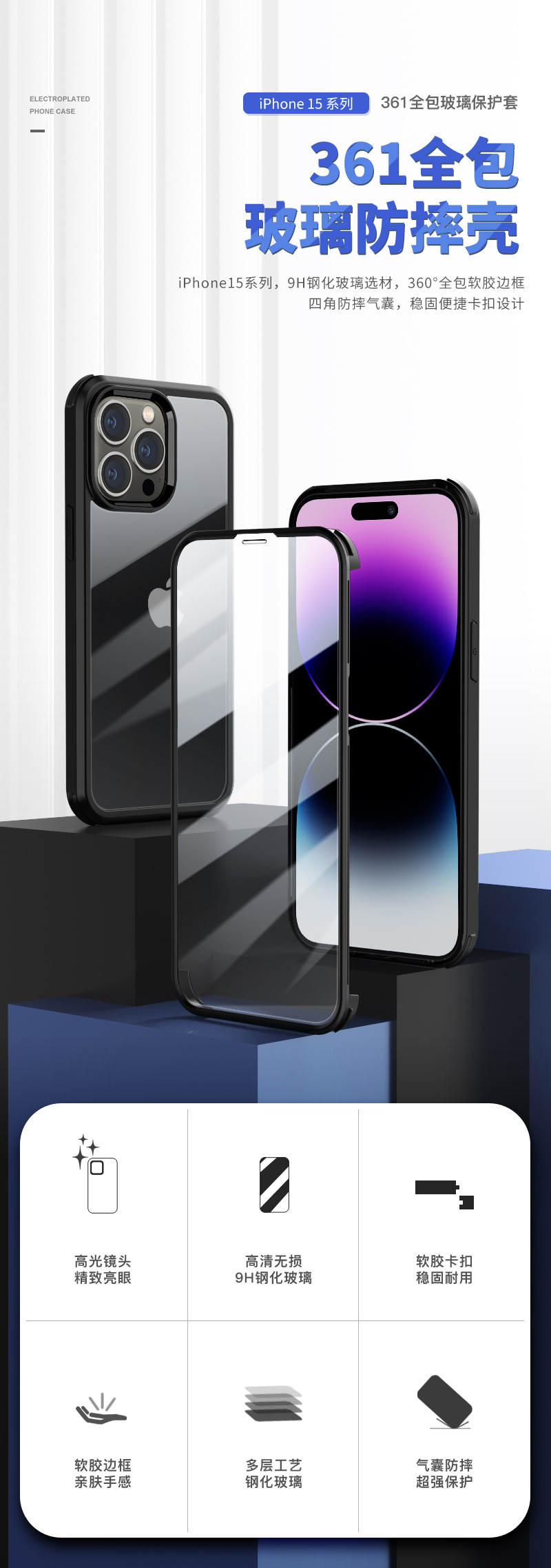 애플 15 양면 유리 전화 케이스 13pro 휴대 전화 올인원 보호 커버 투명 안티 드롭 14 케이스 1