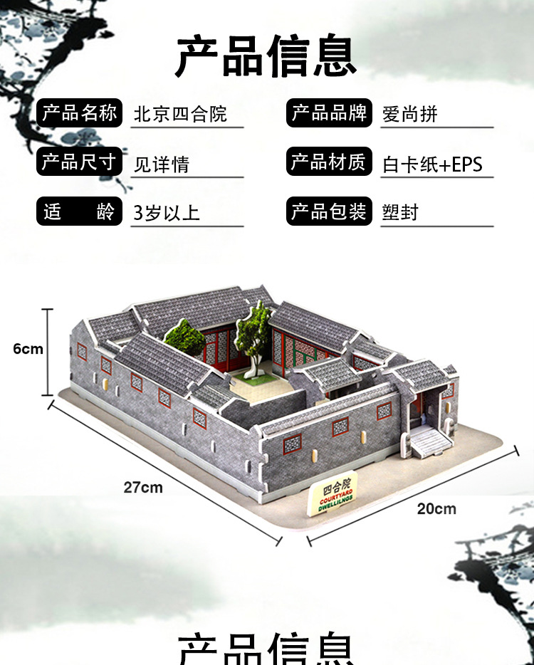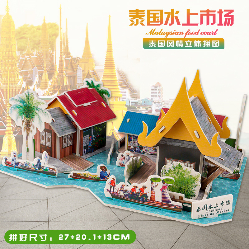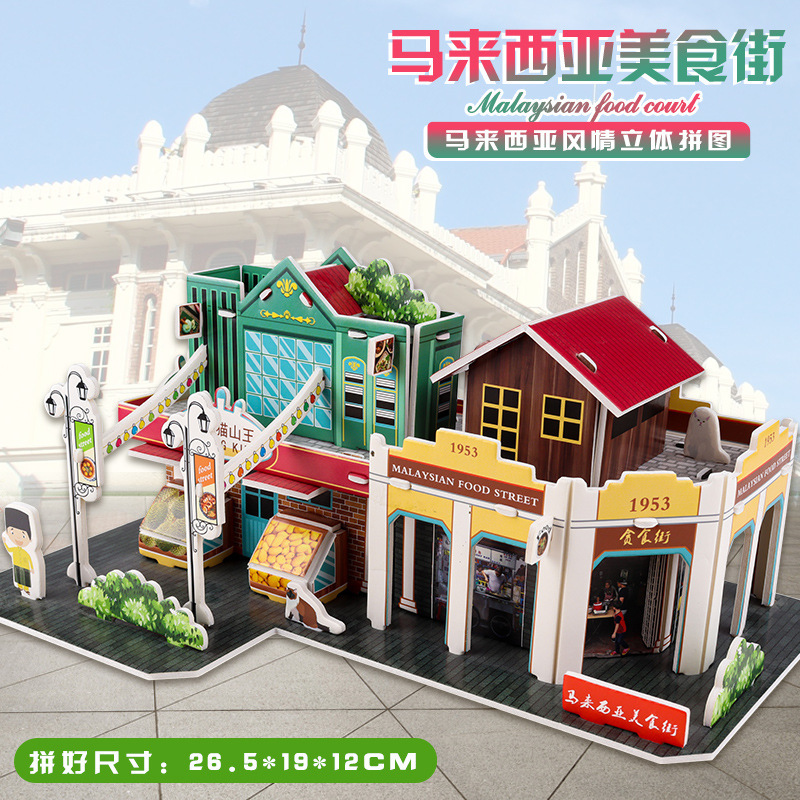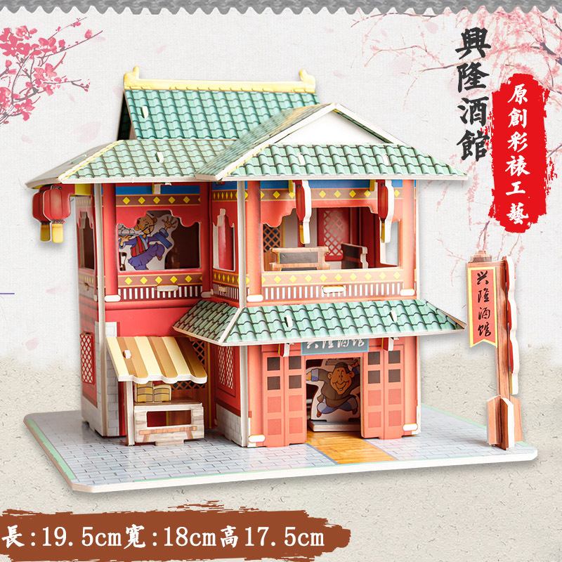 DIY 어린이용 새로운 3D 입체 퍼즐 모델 학교 선물 종이 컬러 조립 수공예 장난감 중국풍 건축물스토어 가기