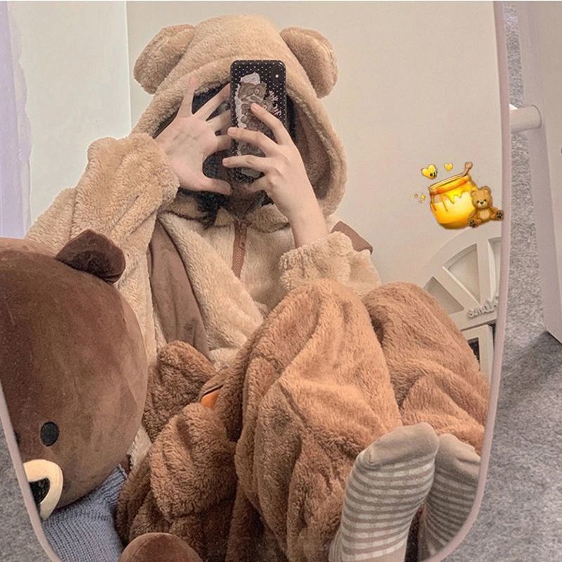 여성을위한 귀여운 곰 산호 양털 원피스 잠옷 2024 새로운 겨울 두꺼운 원피스 잠옷스토어 가기