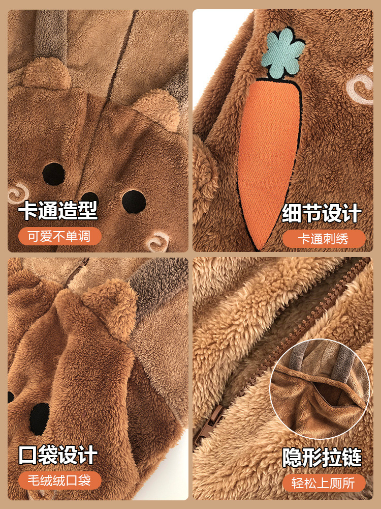여성을위한 귀여운 곰 산호 양털 원피스 잠옷 2024 새로운 겨울 두꺼운 원피스 잠옷