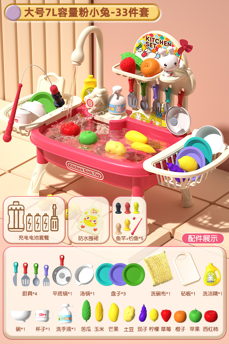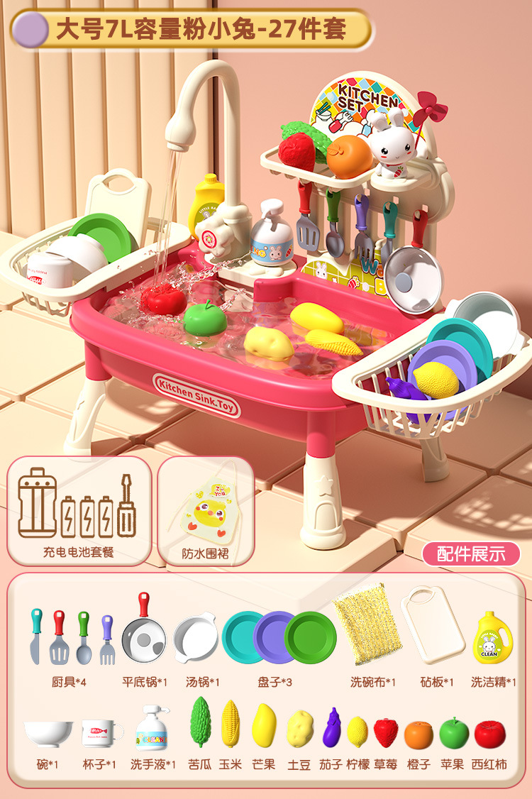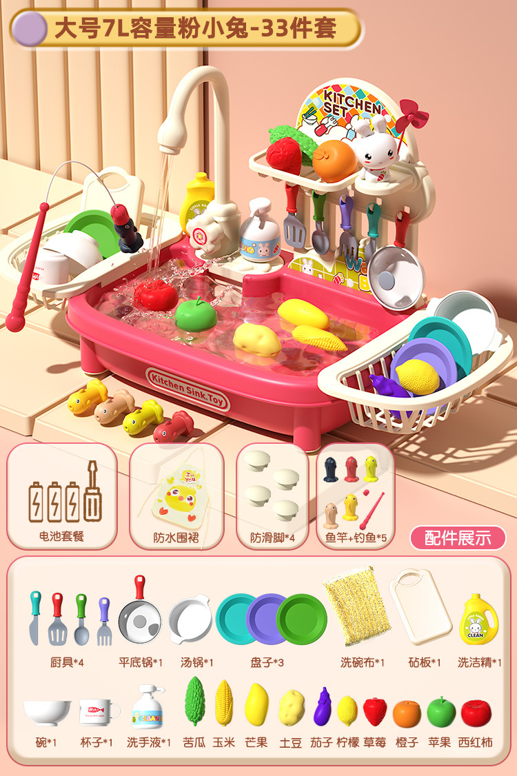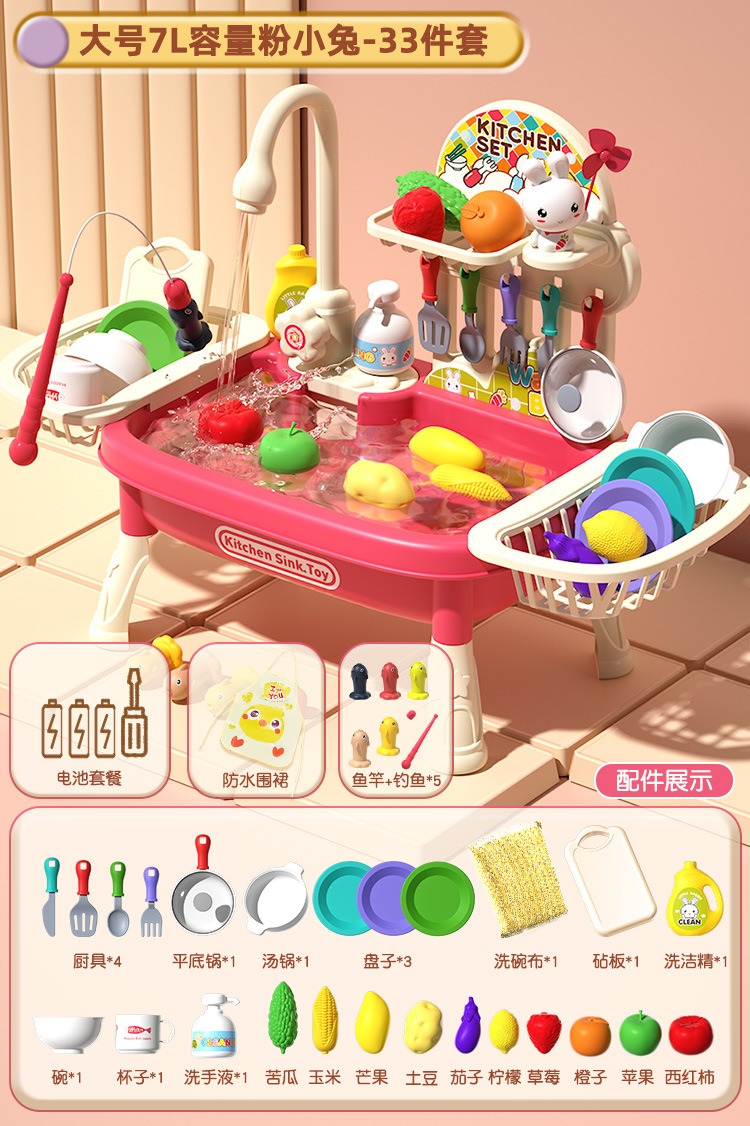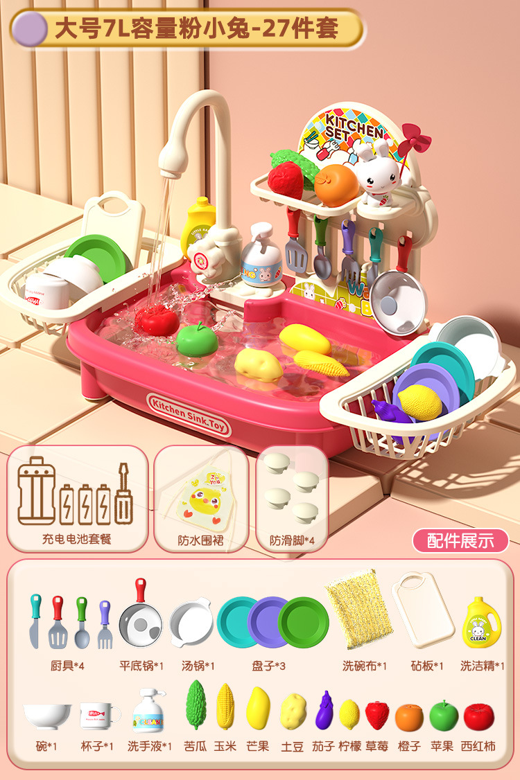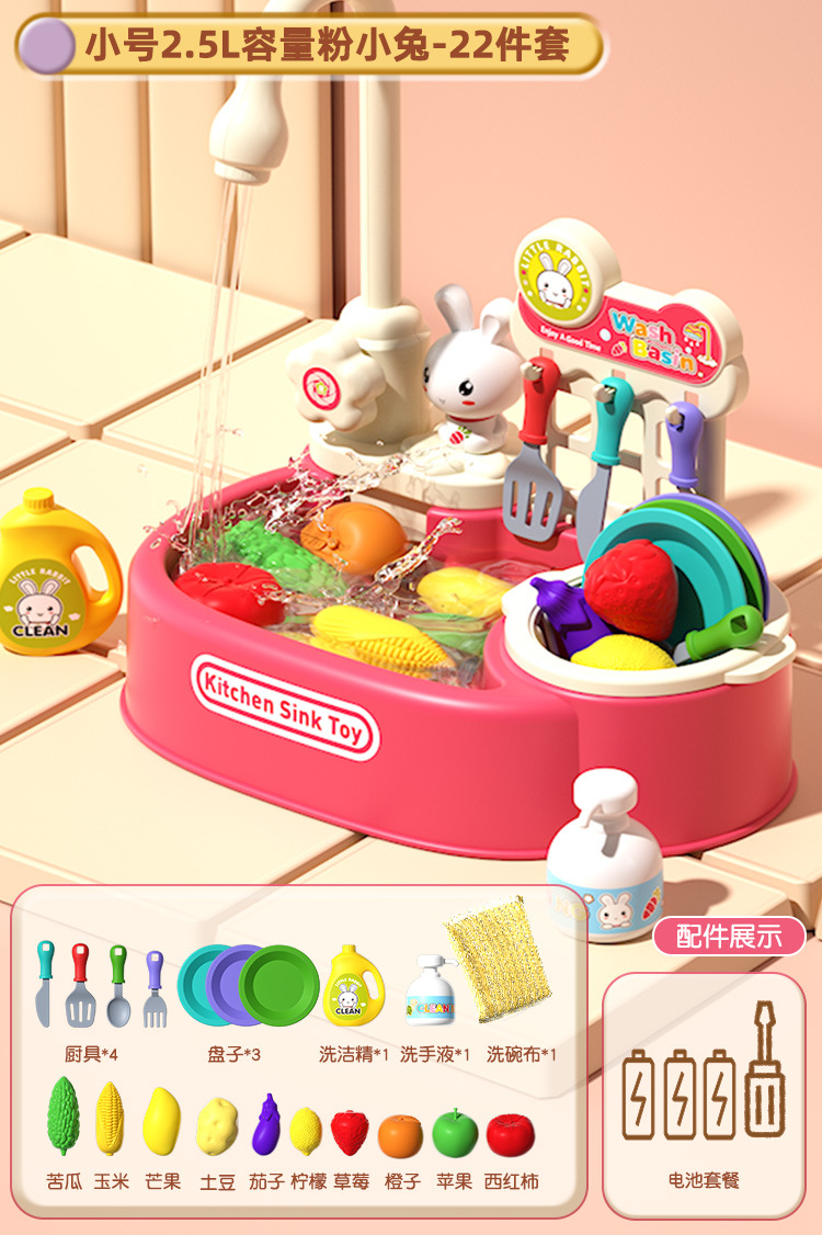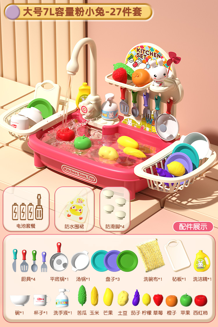 여자 놀이 집 어린이 식기 세척기 장난감 손 분지 물 순환 수도꼭지 전기 접시 싱크대 3 세 소녀 2