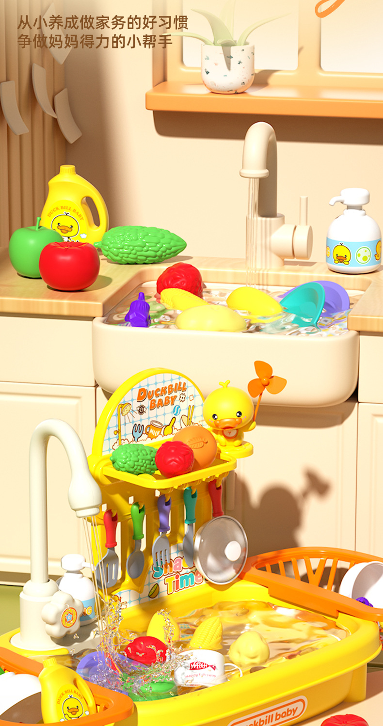 여자 놀이 집 어린이 식기 세척기 장난감 손 분지 물 순환 수도꼭지 전기 접시 싱크대 3 세 소녀 2스토어 가기