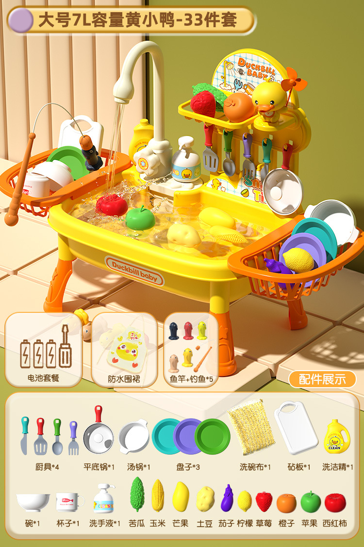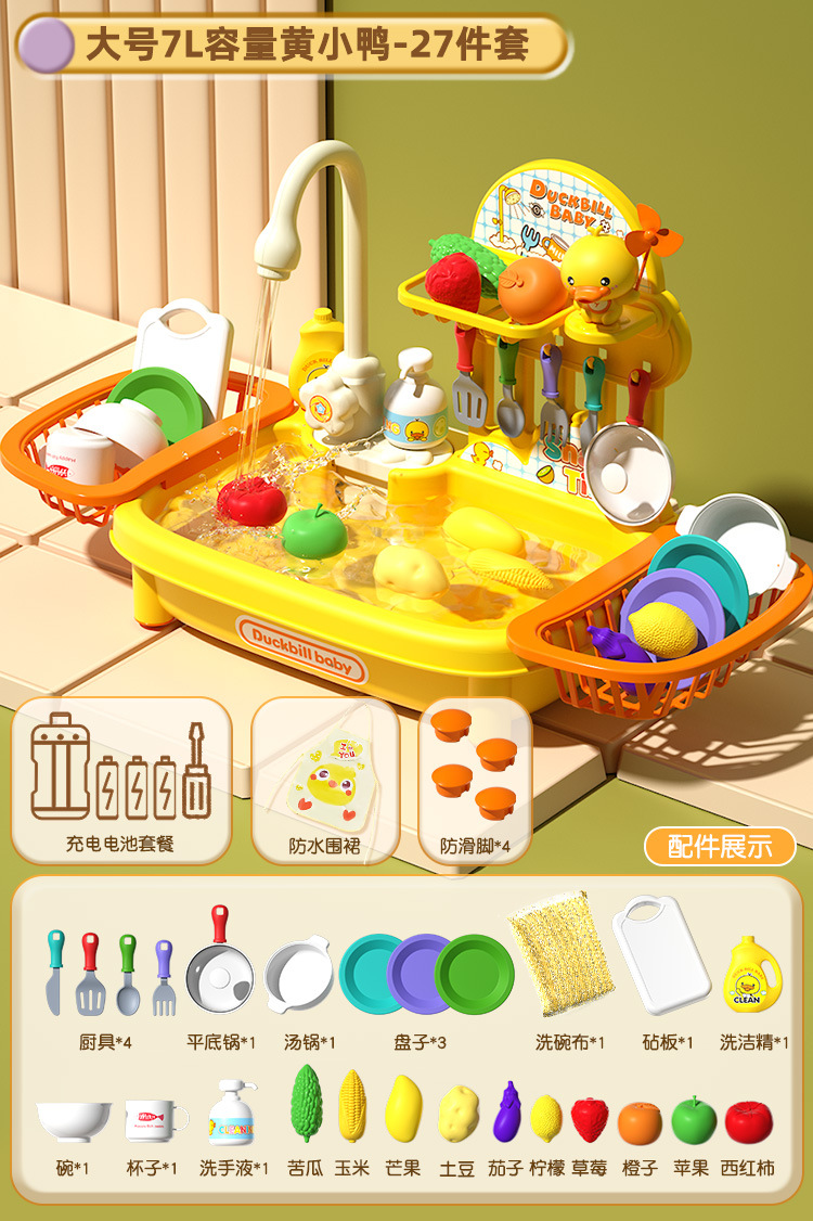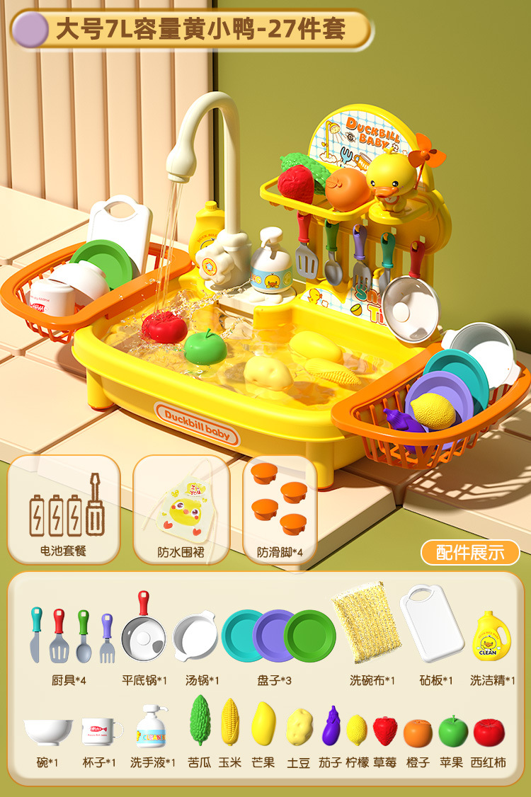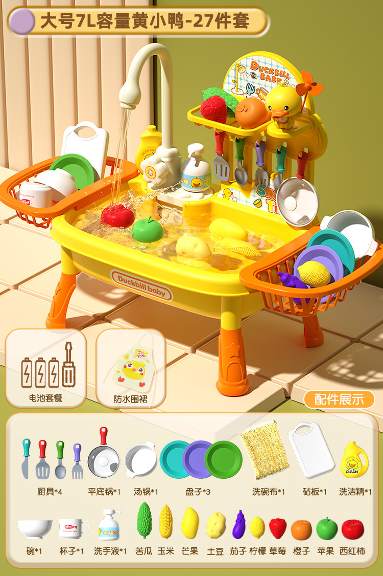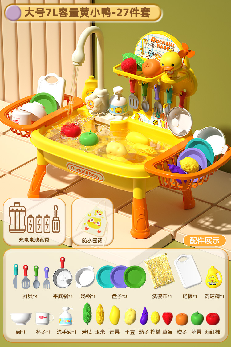 • 노란 오리 풍차 인형 27 조각 대형 식기 세척 테이블 세트 [배터리 버전]