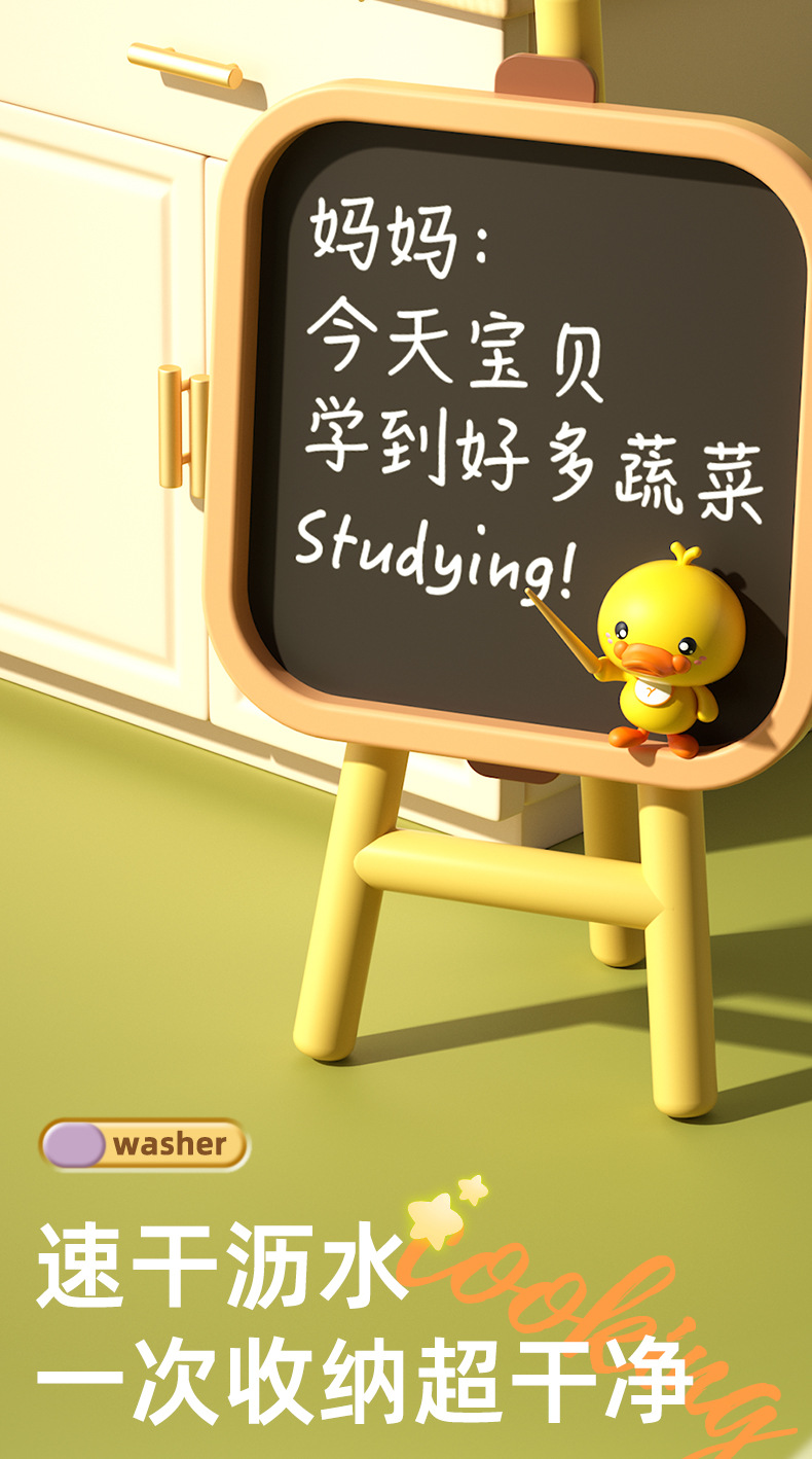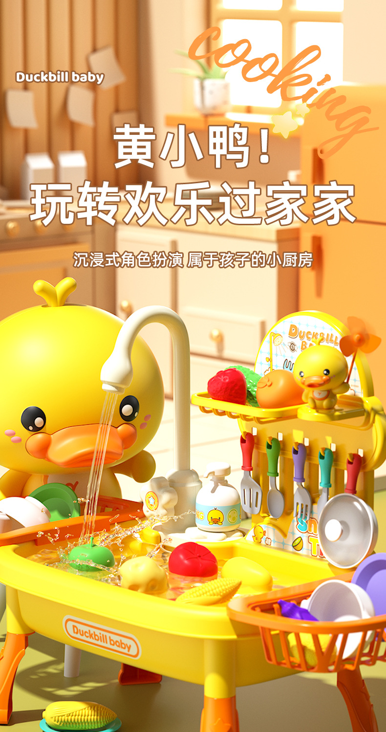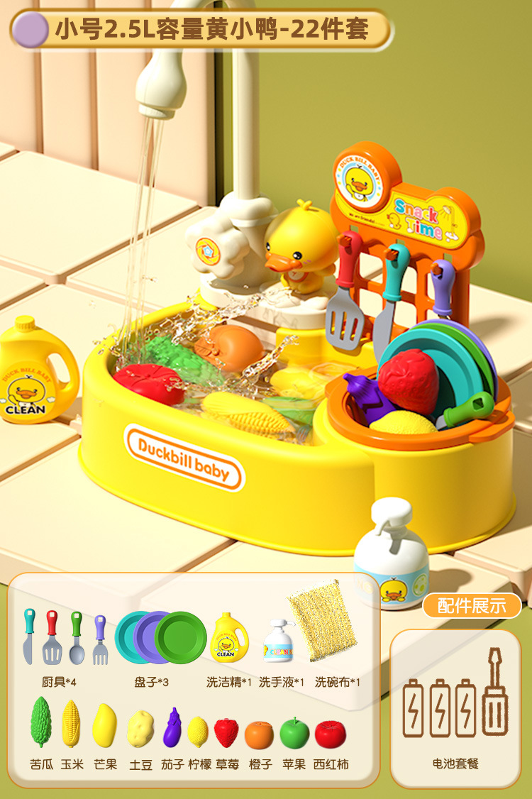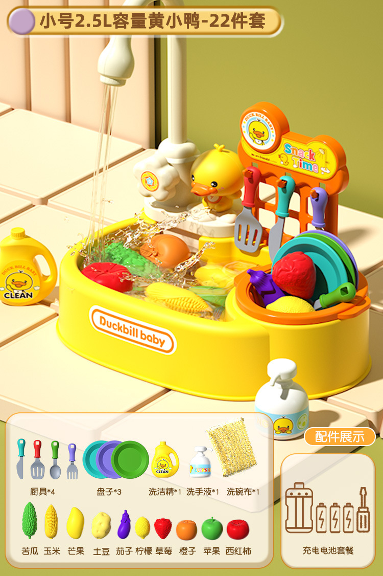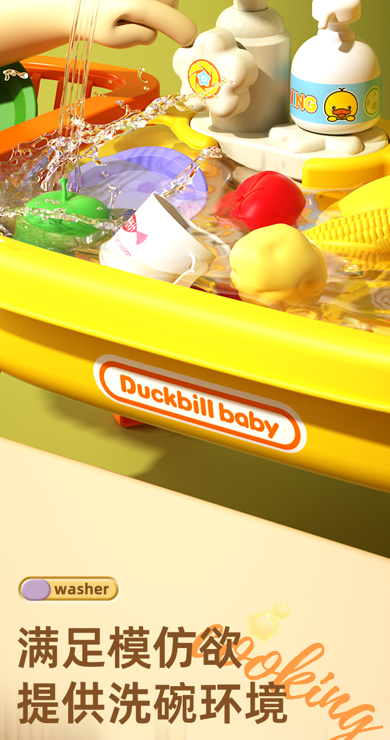 • 노란 오리 인형 22 조각 식기 세척 테이블 [충전 버전]