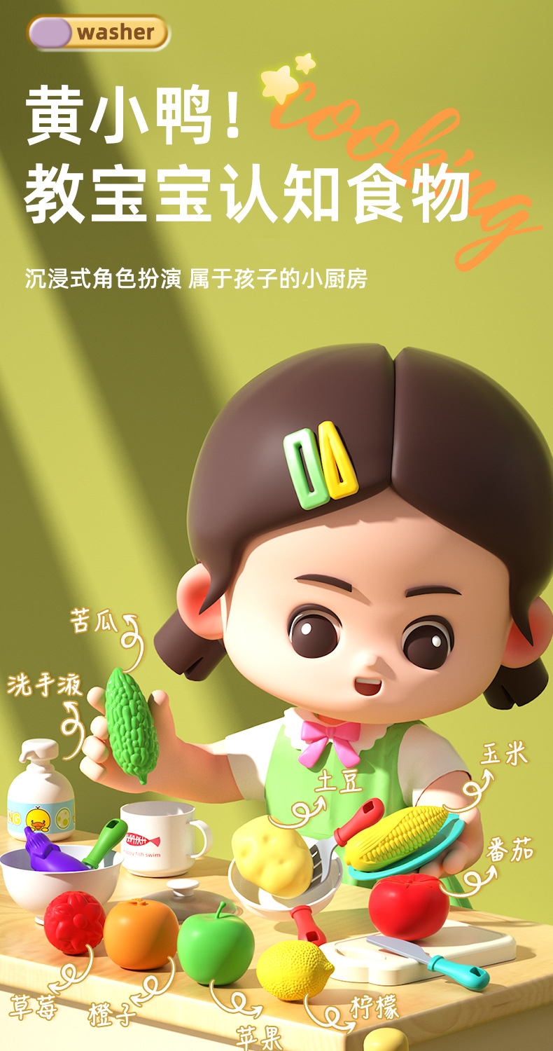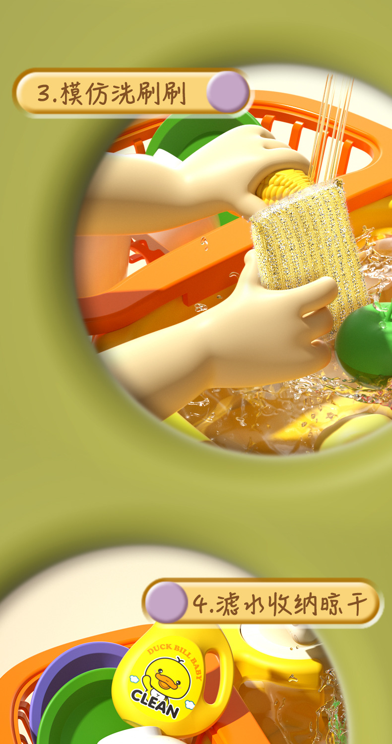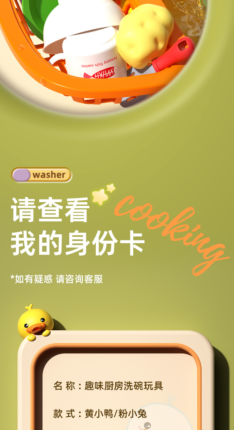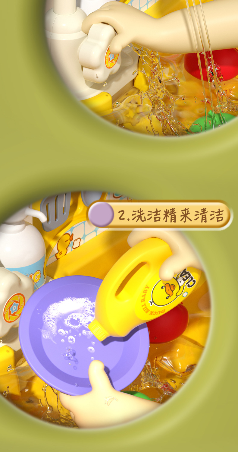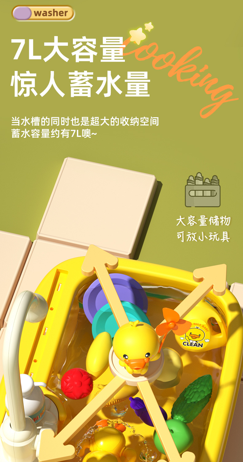 • 노란 오리 인형 22 조각 식기 세척 테이블 [충전 버전]