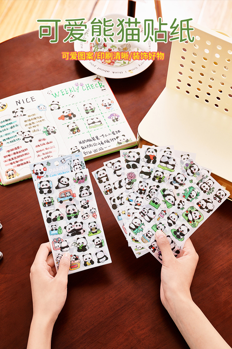 창조적 인 만화 팬더 스티커 어린이 귀여운 소녀 심장 DIY 소재 작은 스티커 손 계정 문구 장식 스티커스토어 가기