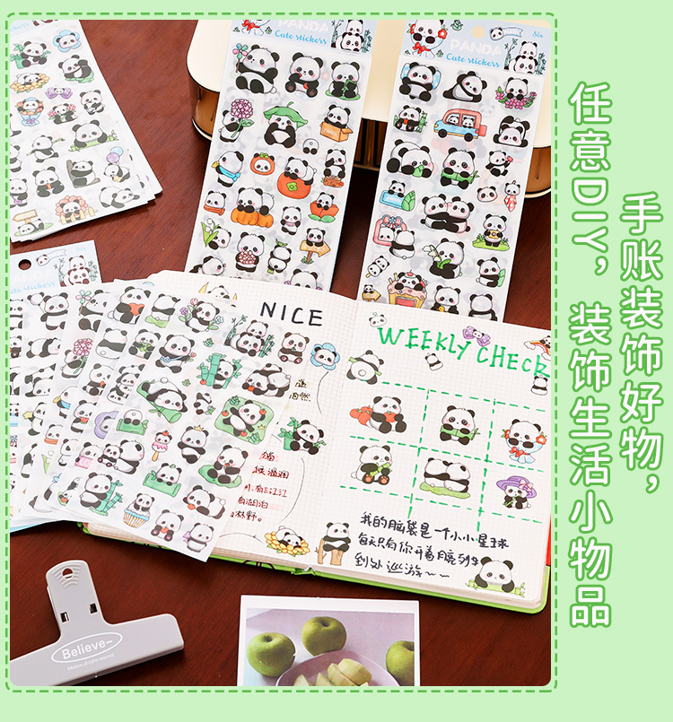 창조적 인 만화 팬더 스티커 어린이 귀여운 소녀 심장 DIY 소재 작은 스티커 손 계정 문구 장식 스티커