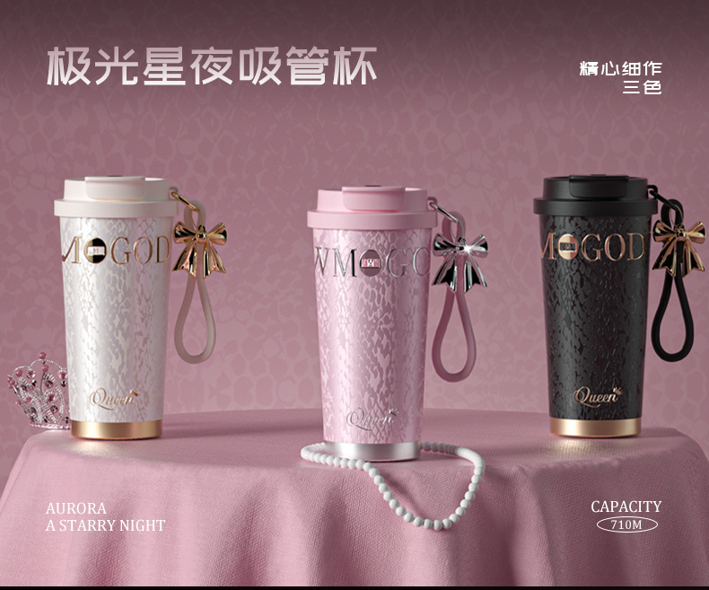 더블 음료 커피 컵 세라믹 라이너 보온병 컵 휴대용 동반 컵 높은 색상 값 밀짚 컵 선물 사용자 정의스토어 가기