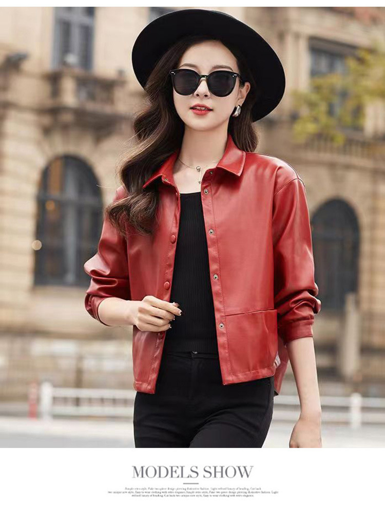 새로운 여성 가죽 코트 봄과 가을 뜨거운 판매 한국 스타일 PU 가죽 자켓 느슨한 짧은 오토바이 가죽 코트 공장 직접 판매스토어 가기